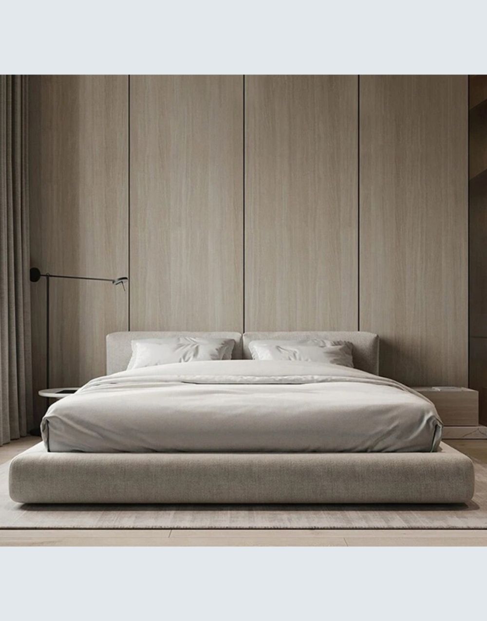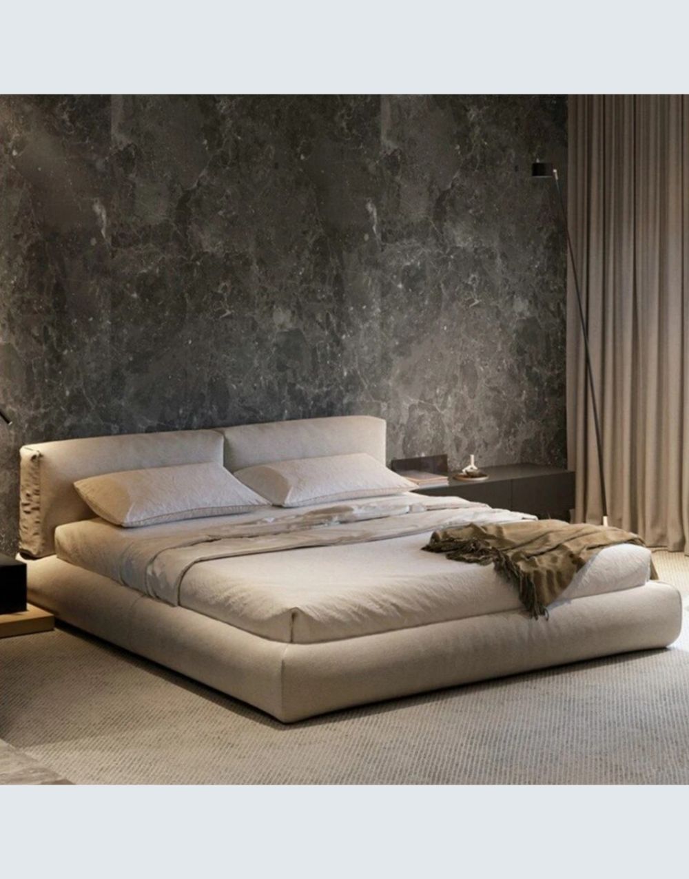 La cama tapizada EVA LUNA ofrece una experiencia de descanso de lujo con su cabecero elegante y acolchado de espuma de alta densidad. Su diseño sofisticado y la suavidad del tejido de alta calidad crean un ambiente acogedor en el dormitorio. Proporciona un apoyo óptimo para un sueño reparador. (NO INCLUYE MESAS DE NOCHE)