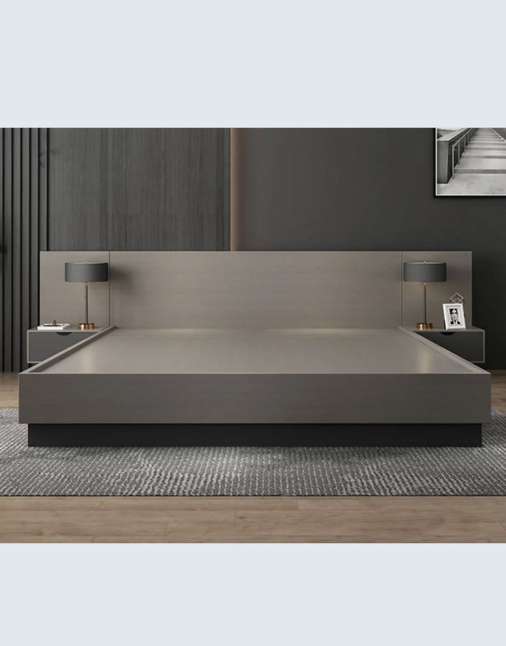 La cama JALUR se destaca por su llamativa cabecera ,con opcion de listones en sus laterales si asi se desea( fabricados en madera maciza), sus nocheros integrados brindan una solución completa y versátil. El diseño sencillo pero sofisticado ofrece funcionalidad, es ideal para complementar cualquier ambiente con elegancia y practicidad.