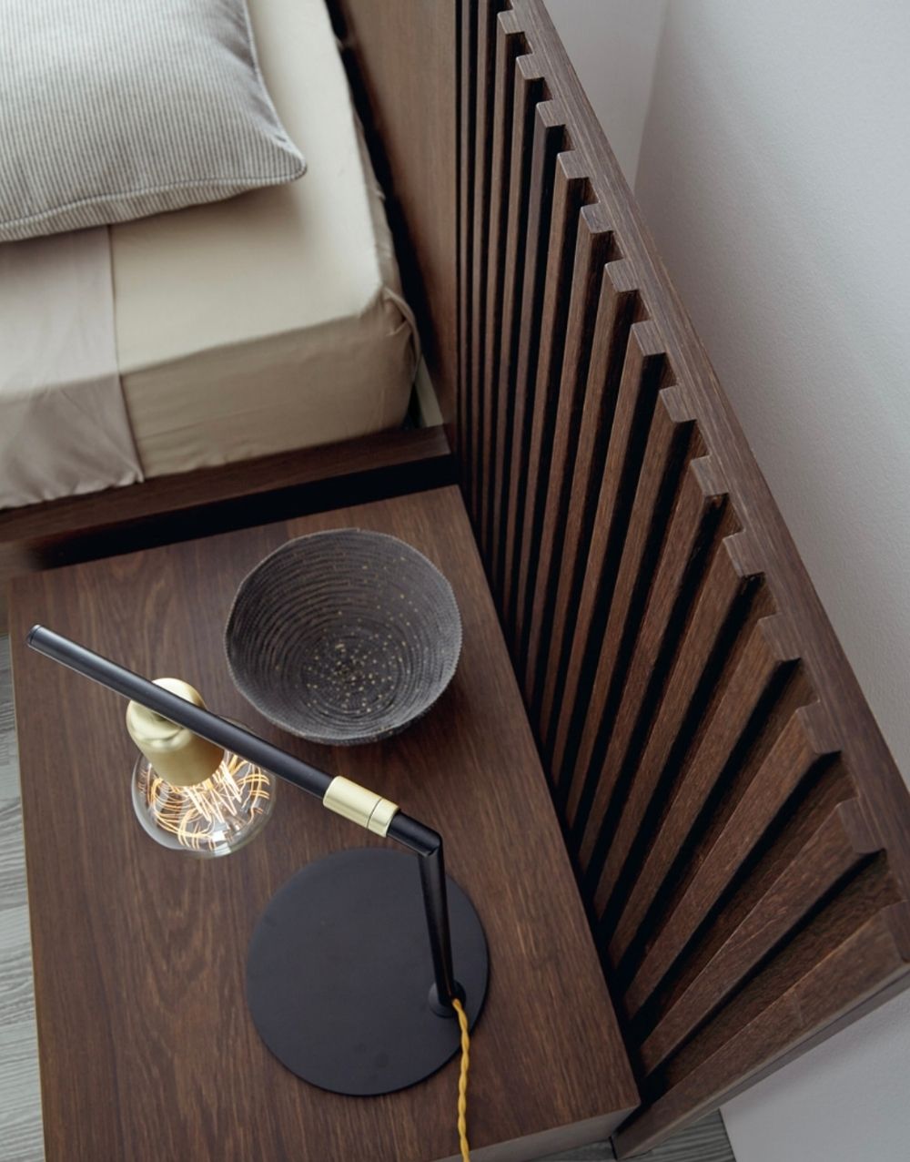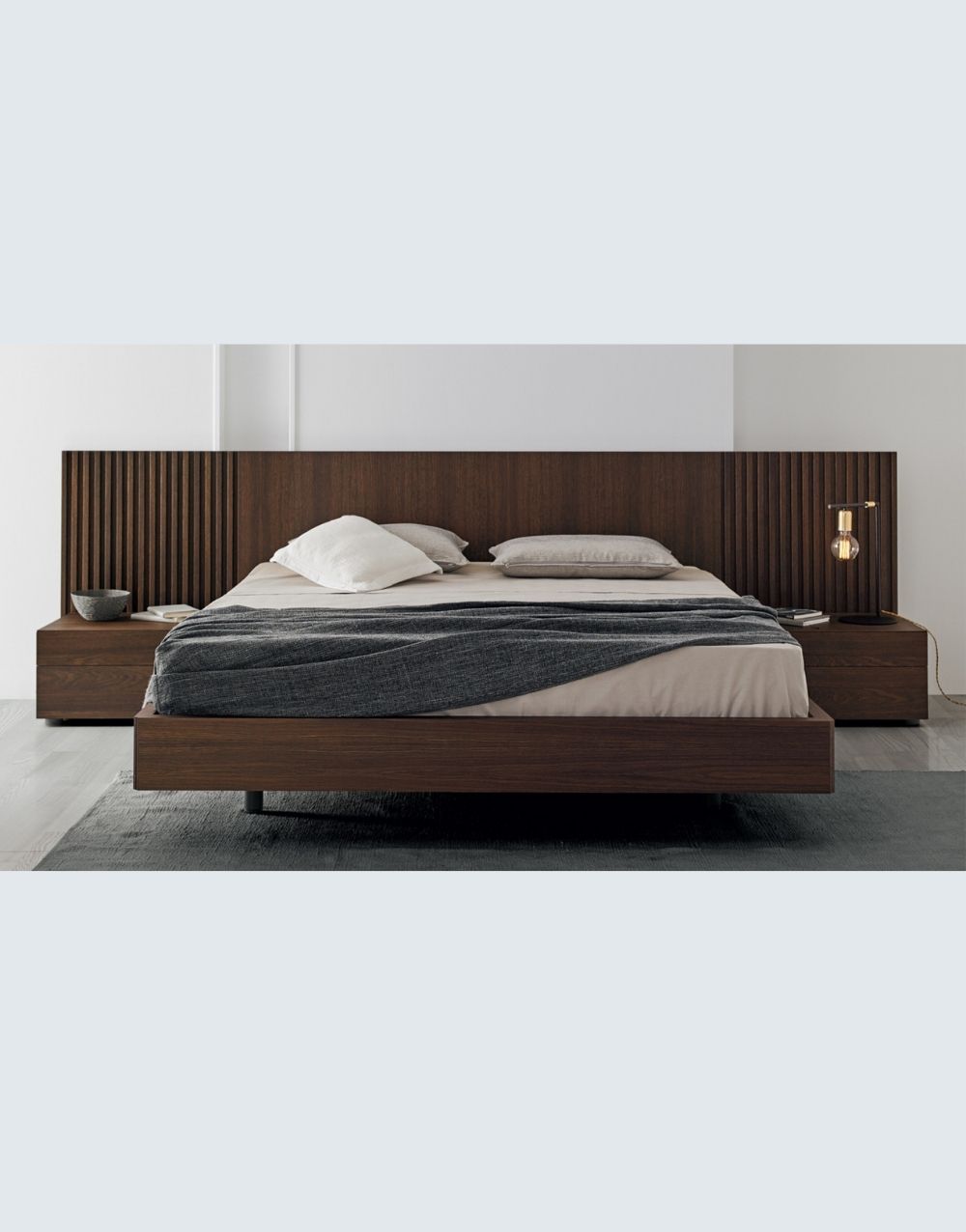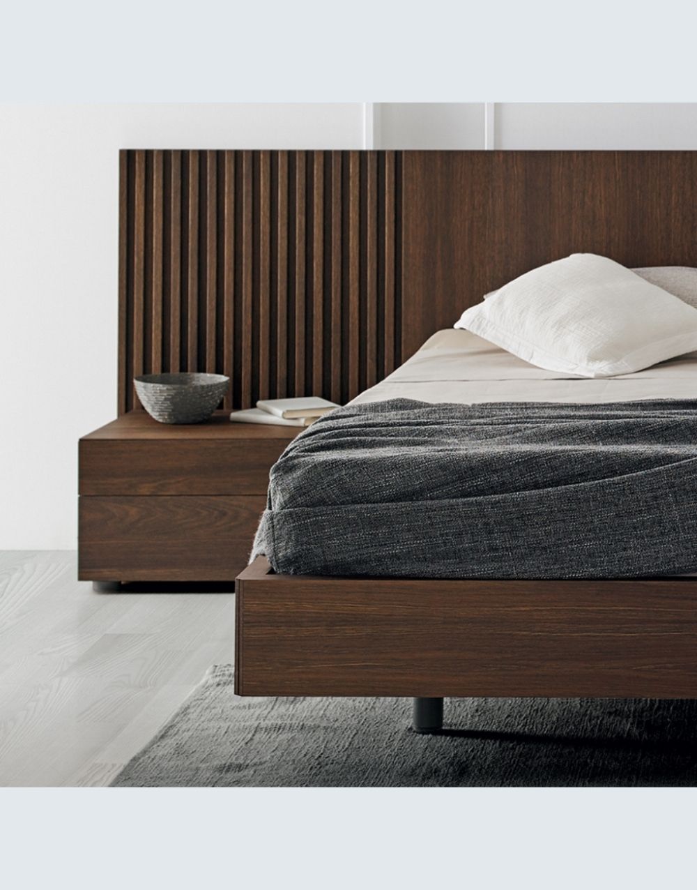 La cama PALITROK destaca por su llamativo cabecero en madera maciza con listones en sus laterales donde van los nocheros,cada uno con dos cajones para almacenamiento . Toda la cama y nocheros es fabricada en madera maciza, es una cama muy versatil y completa. Las patas son fabricadas en acero cold rolled pintado en electoestática negro mate.