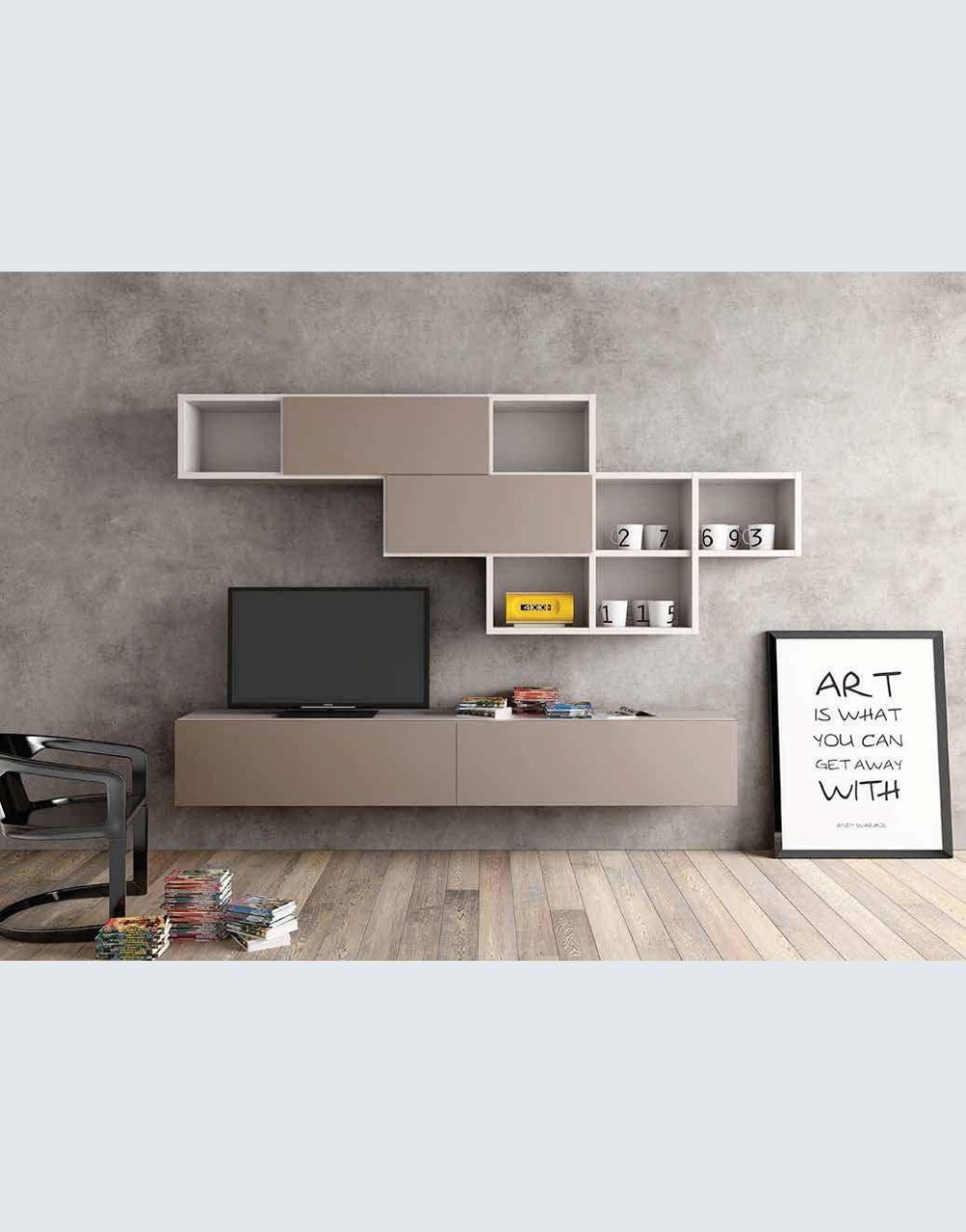 IMO es un diseño de centro de entretenimiento elaborado con madera industrial resistente y finos acabados, con pintura poliuretana disponible en varios colores. Anclado a la pared, ofrece repisas o librería integradas, ideal para decoración y creación de un ambiente cálido.Perfecto para quienes disfrutan de un espacio acogedor y funcional.