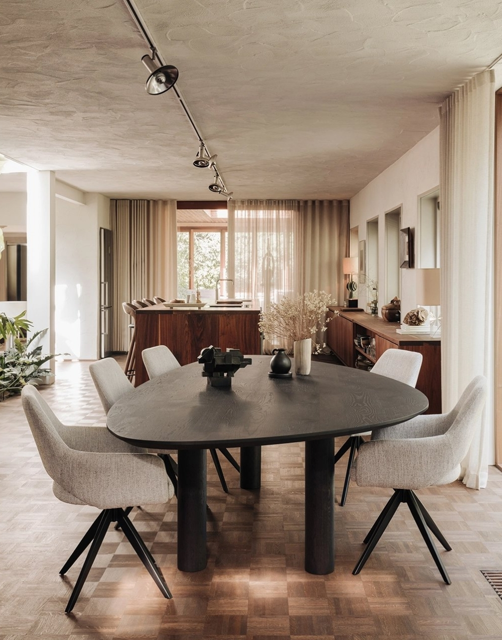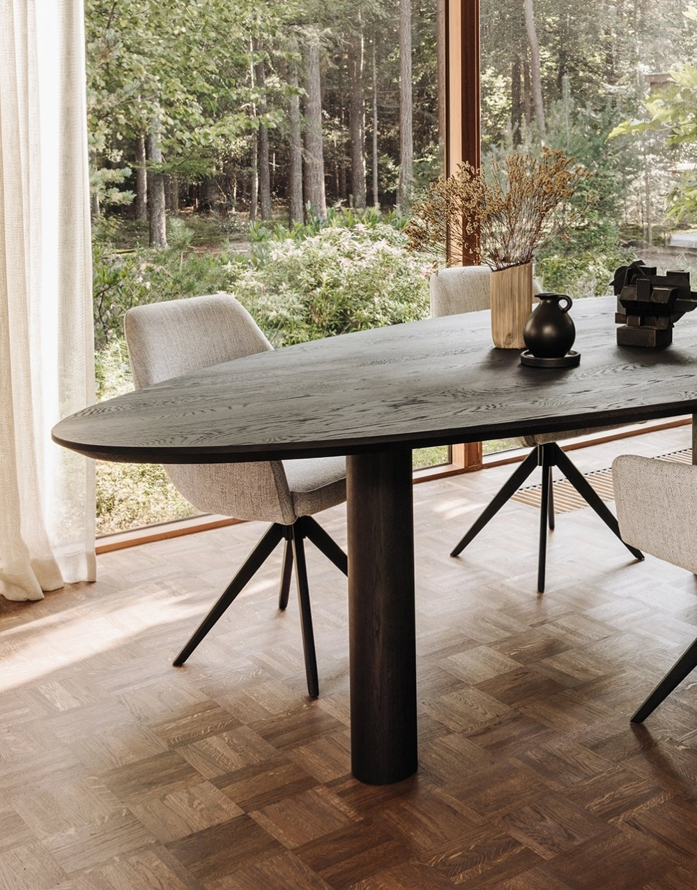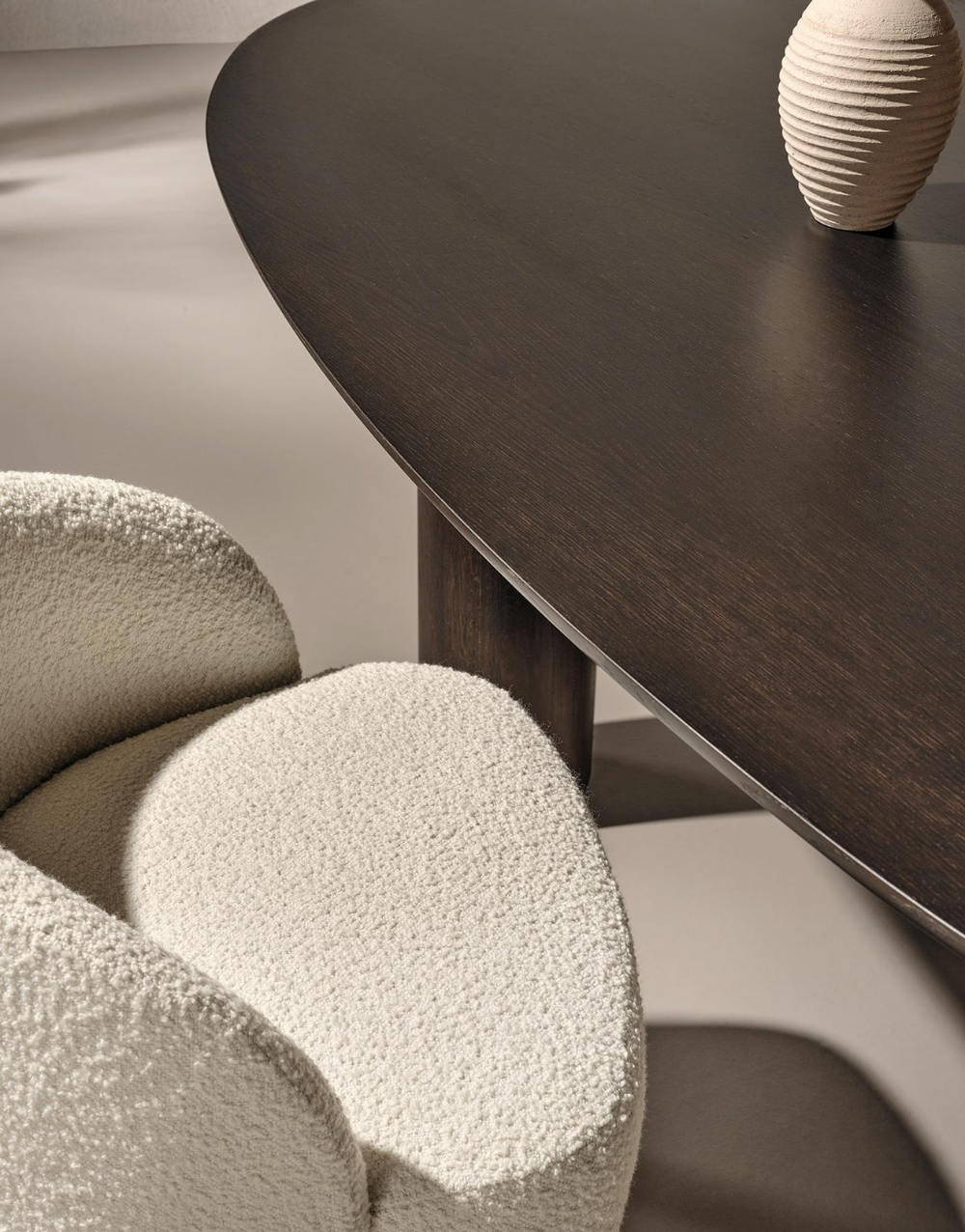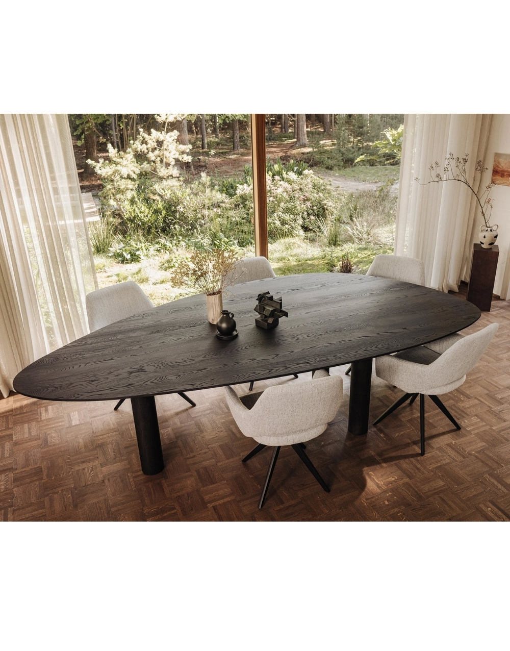 El comedor GREGORIA combina elegancia y versatilidad en una pieza de diseño sofisticado. Su mesa, disponible exclusivamente en formato ovalado, ofrece una estética fluida y armoniosa, ideal para generar un ambiente acogedor y funcional.