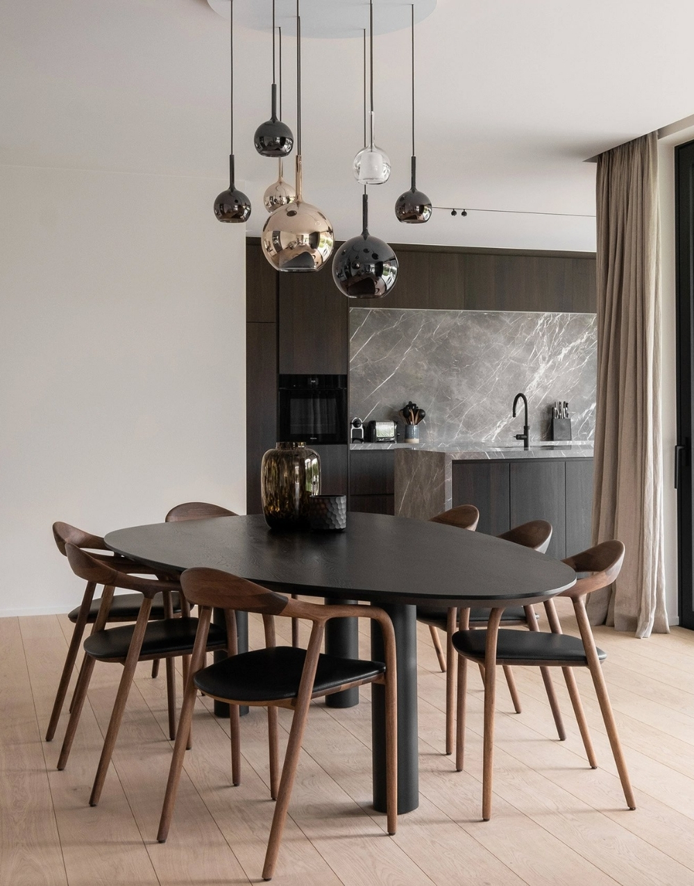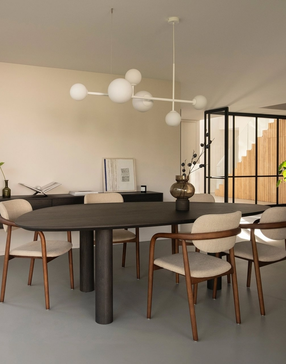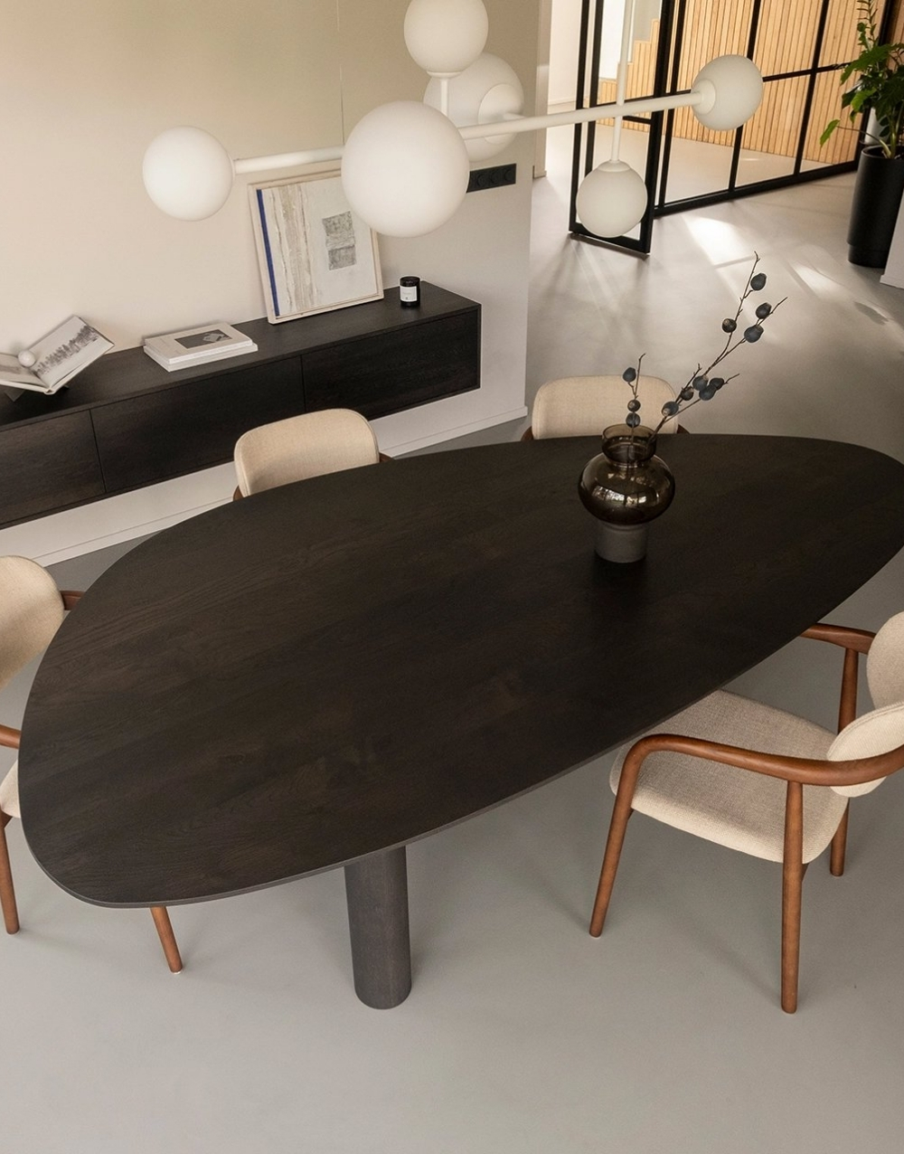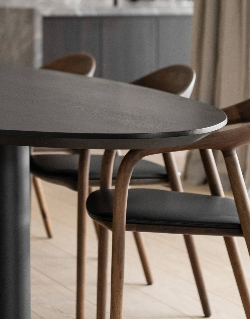El comedor GREGORIA combina elegancia y versatilidad en una pieza de diseño sofisticado. Su mesa, disponible exclusivamente en formato ovalado, ofrece una estética fluida y armoniosa, ideal para generar un ambiente acogedor y funcional.