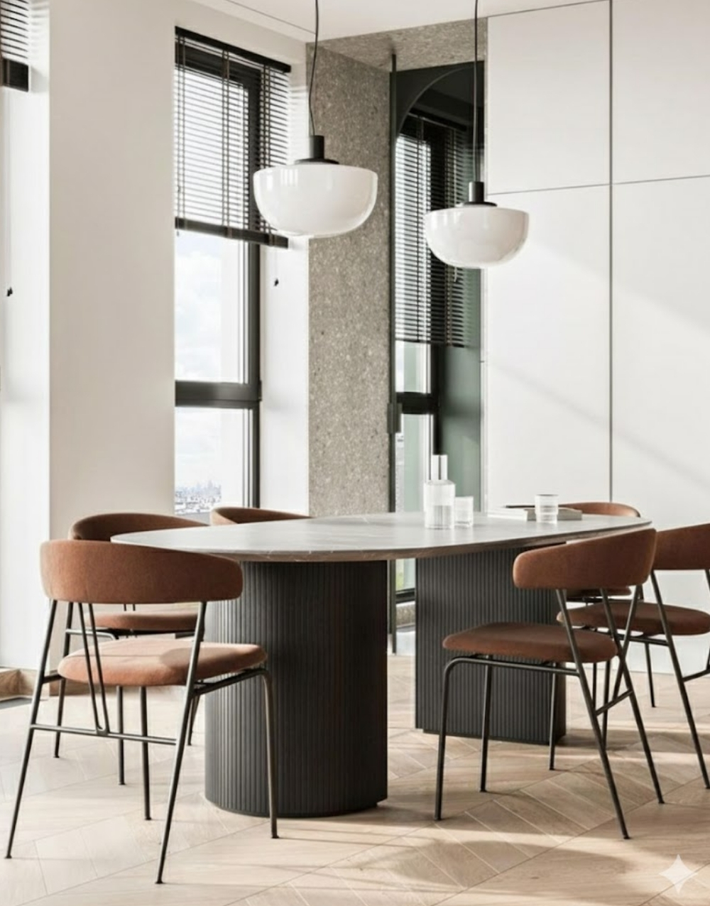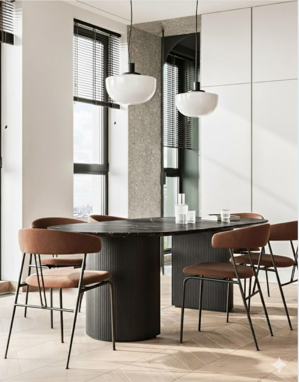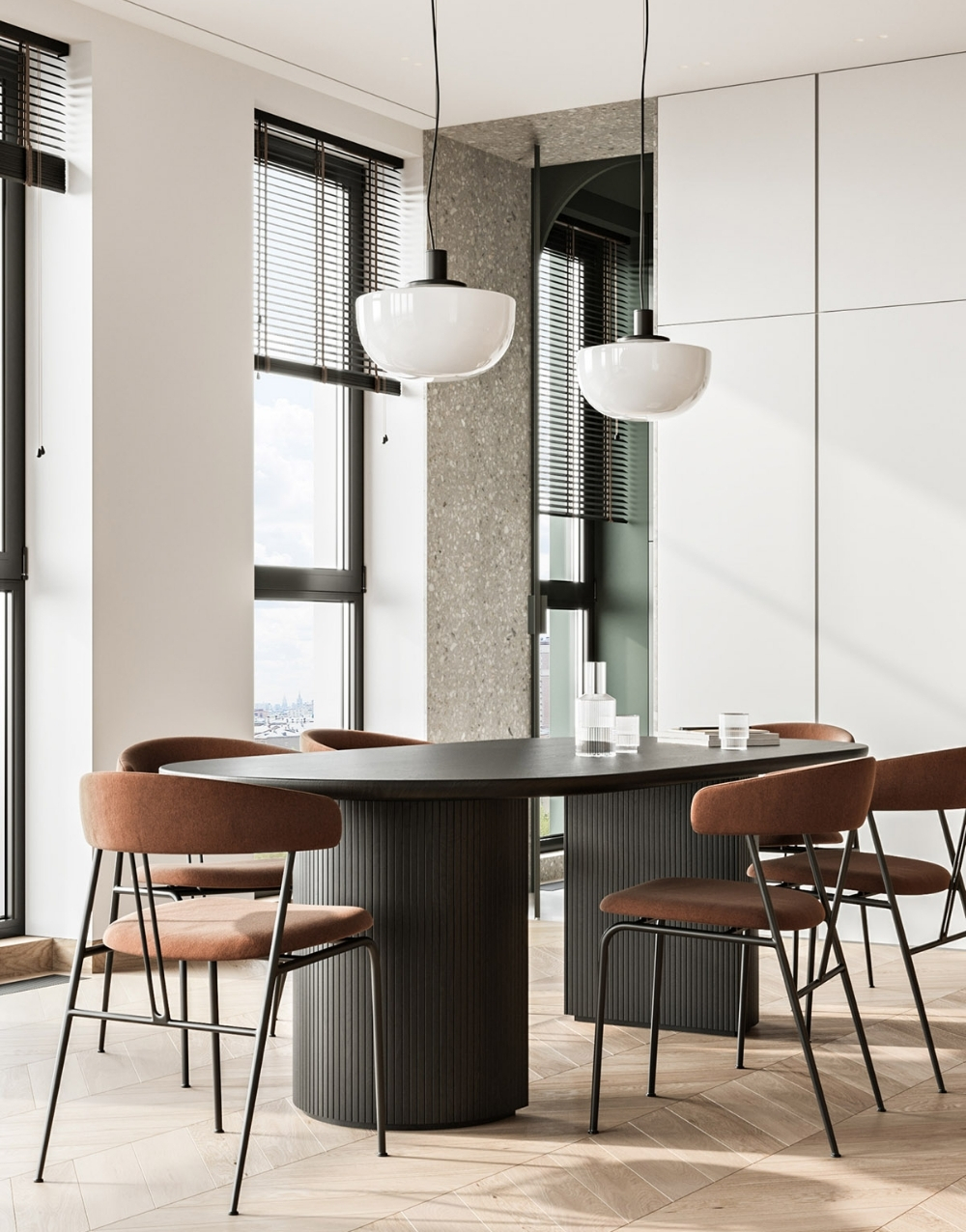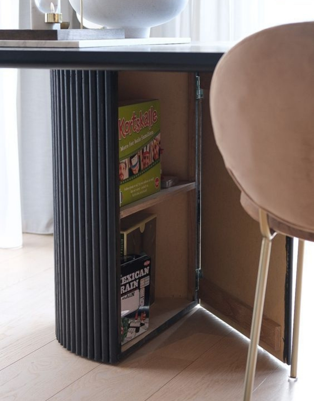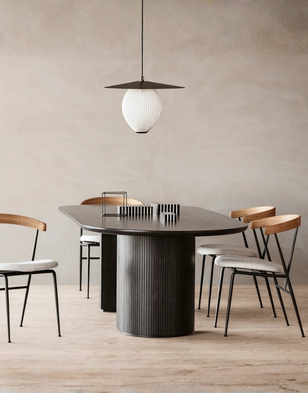 La mesa «PRAGA» representa una redefinición de la sencillez formal, transformando la elegante circunferencia en una forma rectangular y dividiendo el cilindro en dos medias lunas cilíndricas. Estas se encuentran revestidas de pequeños listones redondos en madera maciza, flor morado, otorgando a nuestros muebles una identidad corporativa distintiva. Este redimensionamiento de la «PRAGA» en texturas, sombras y luces refleja el estilo escandinavo moderno de una manera excepcional.