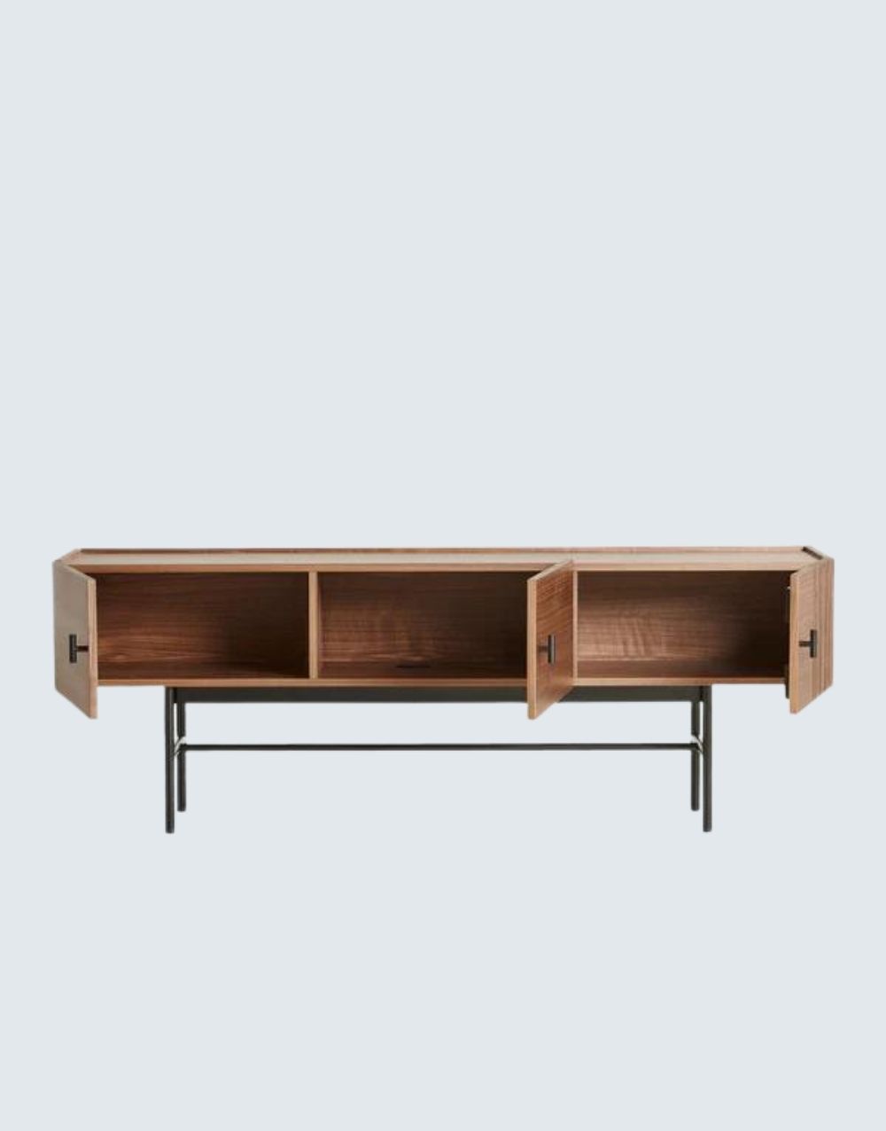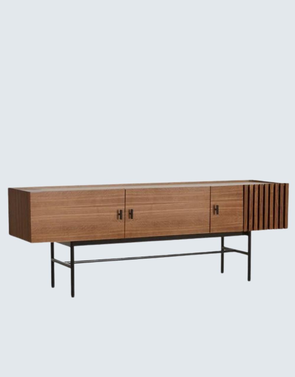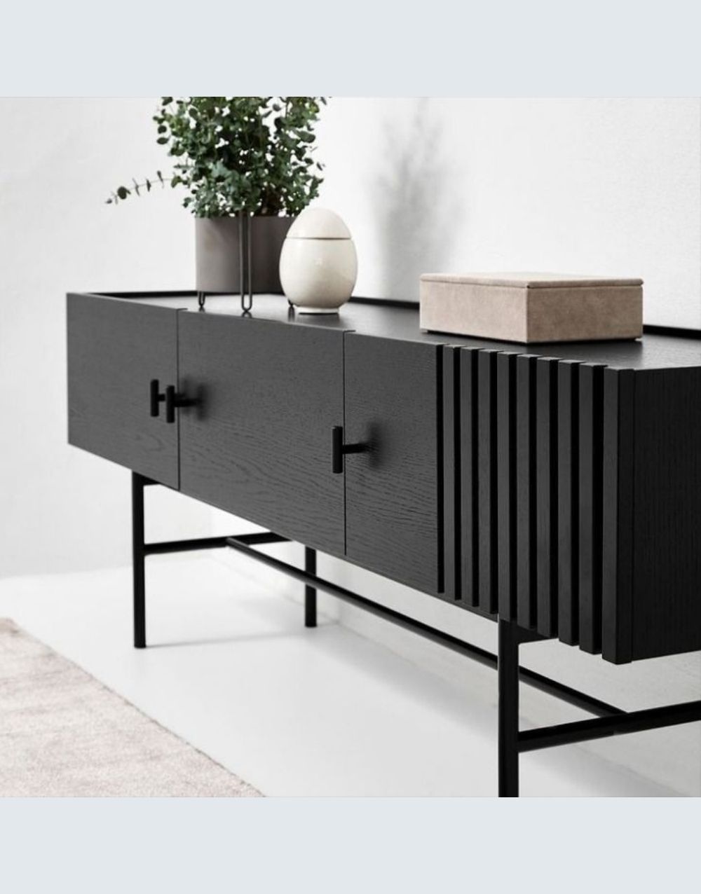 La modularidad de la comoda HUGO BOSS abre nuevos horizontes para almacenar, módulos cerrados, separaciones verticales elegantes que dan al conjunto una notable ligereza gráfica junto con su base fabricada en acero cold rolled acabado pintura electrostática negro mate y su cuerpo en madera Maciza..