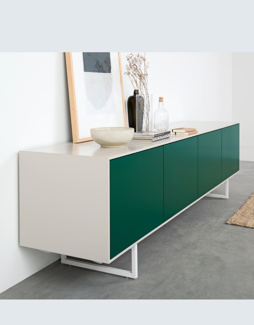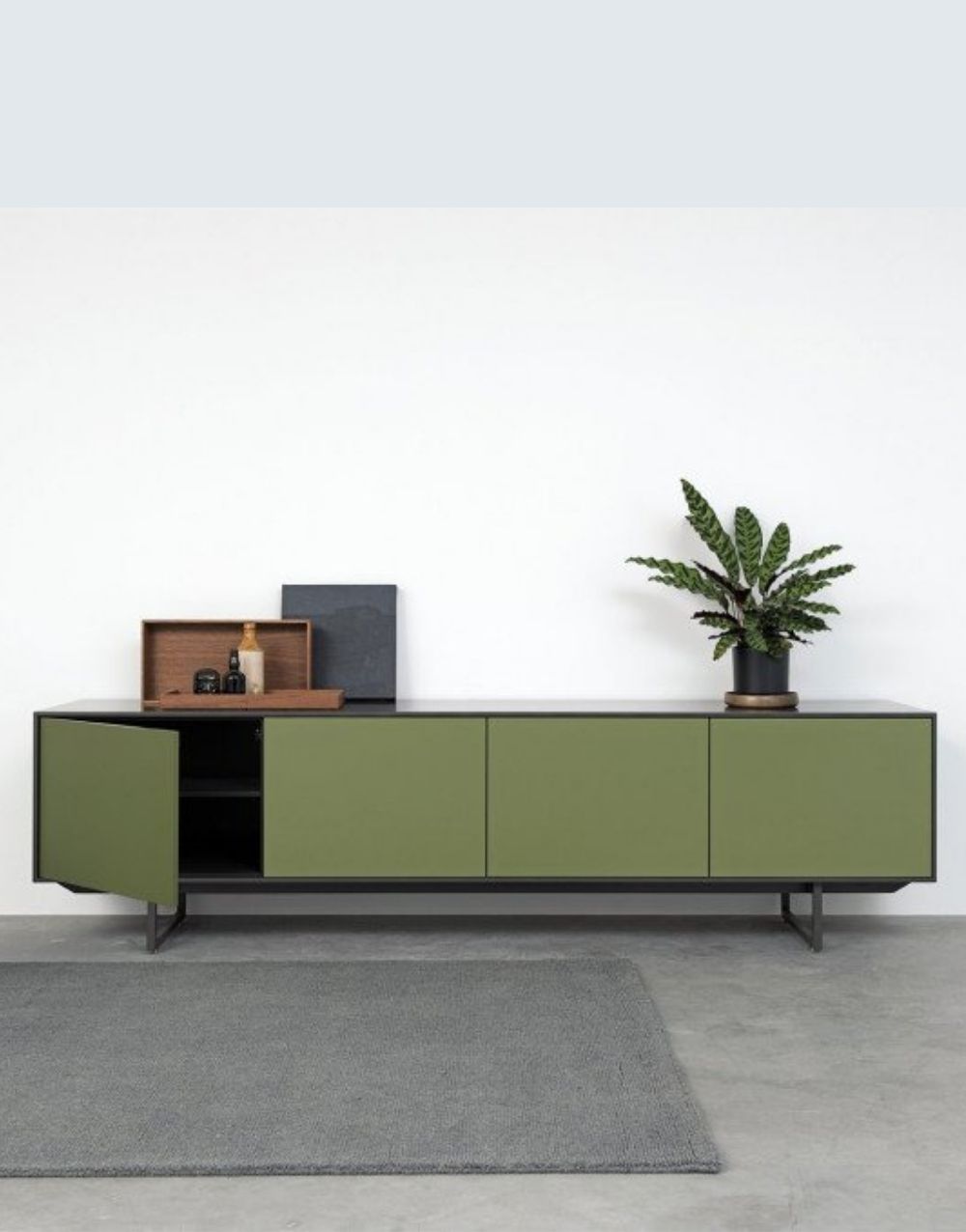 La Cómoda KENIA se destaca por su diseño moderno y vanguardista. Fabricada en madera industrializada, cuenta con cuatro puertas equipadas con sistemas push, permitiendo al cliente elegir el color que mejor se adapte a su estilo. Además, su base metálica está elaborada en acero cold rolled y presenta un atractivo acabado en pintura electrostática de color negro mate, añadiendo un toque contemporáneo a esta pieza de mobiliario.
