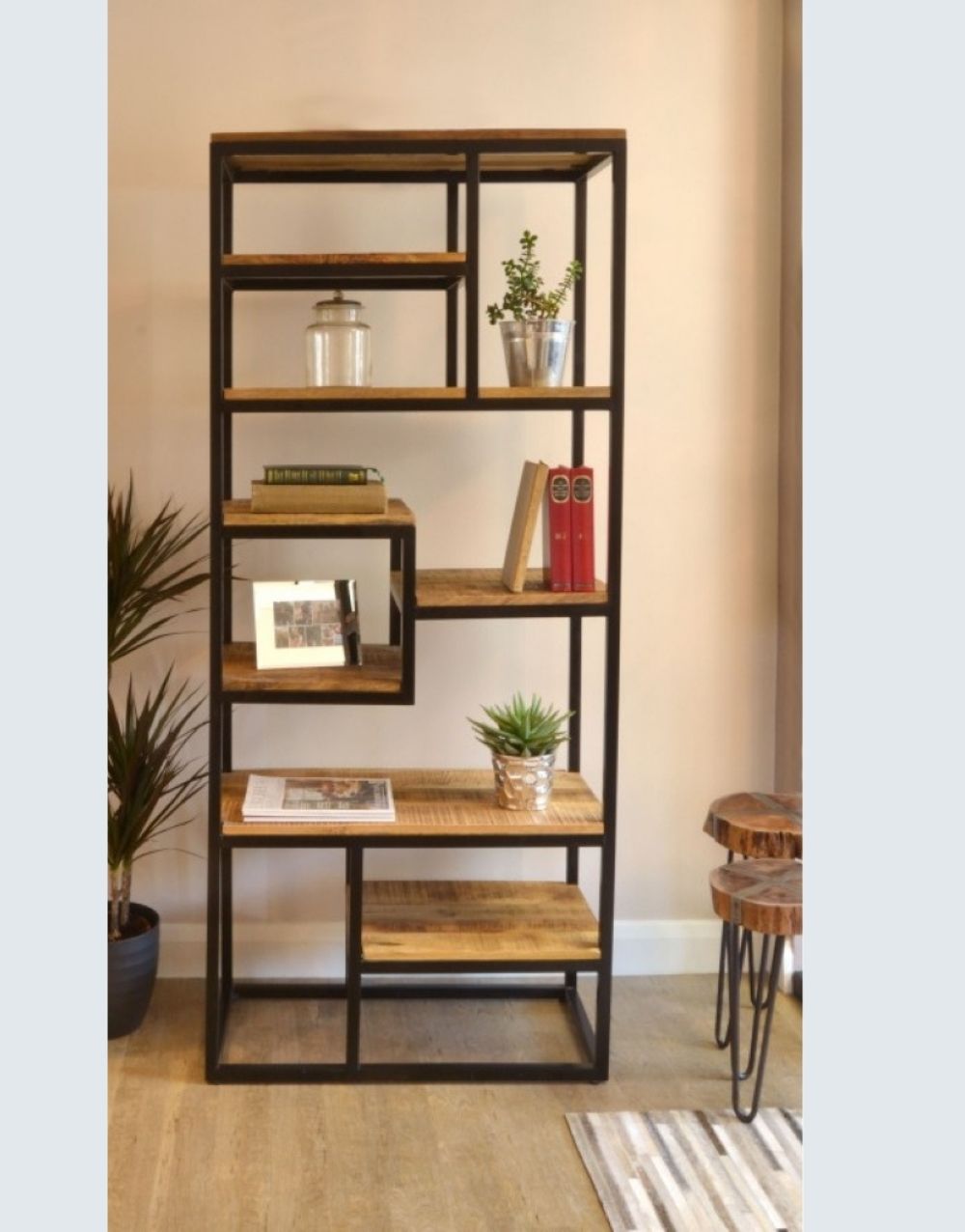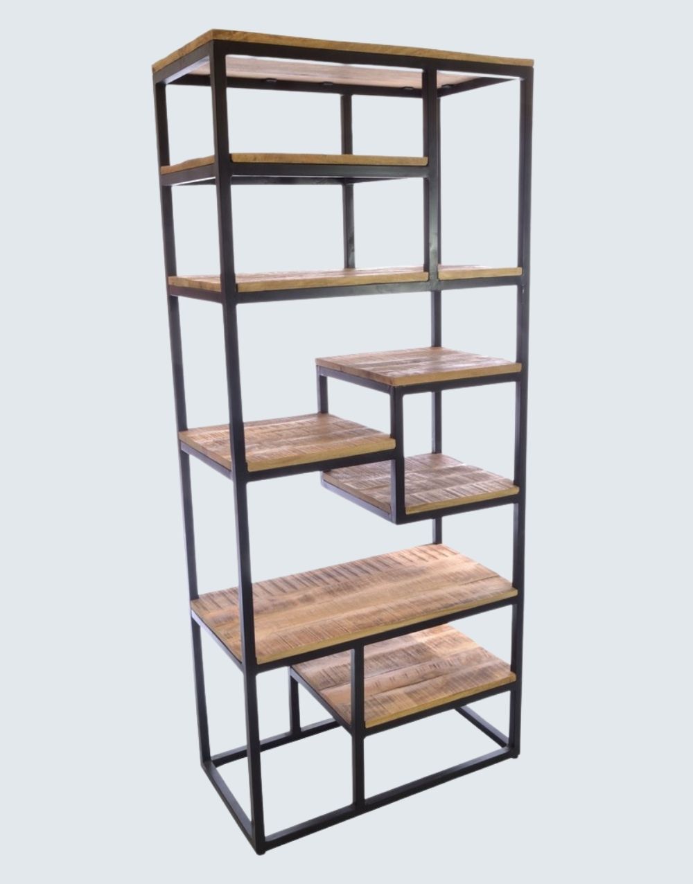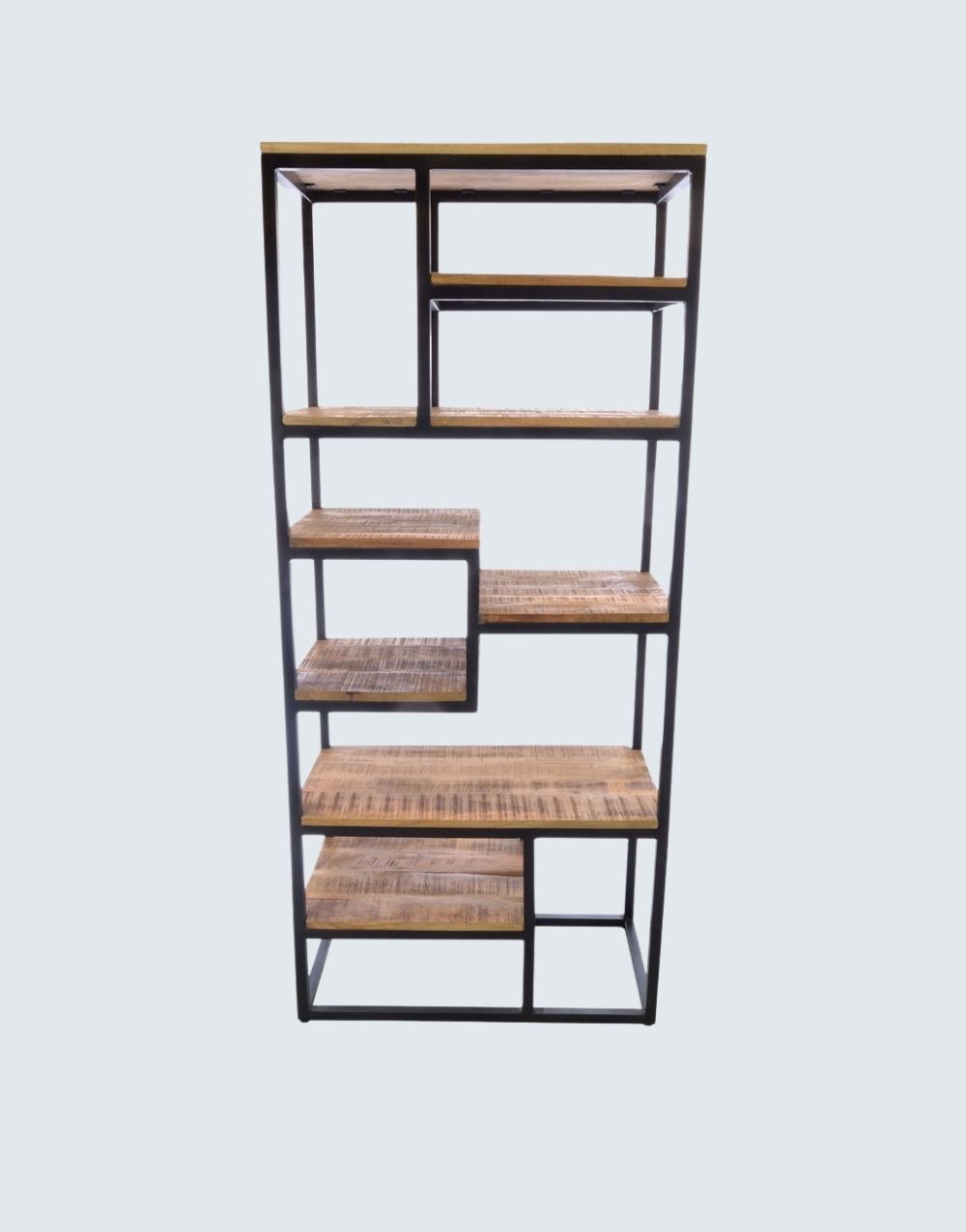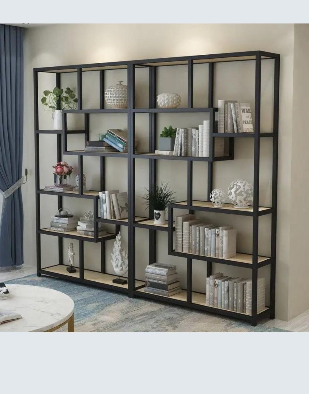 Esta estantería horizontal ofrece una versatilidad excepcional con entrepaños , destacando su agilidad en el diseño y funcionalidad. Perfecta como separador virtual de espacios, combina metal cold rolled pintado en electrostática negro mate con entrepaños de madera maciza flor morado.