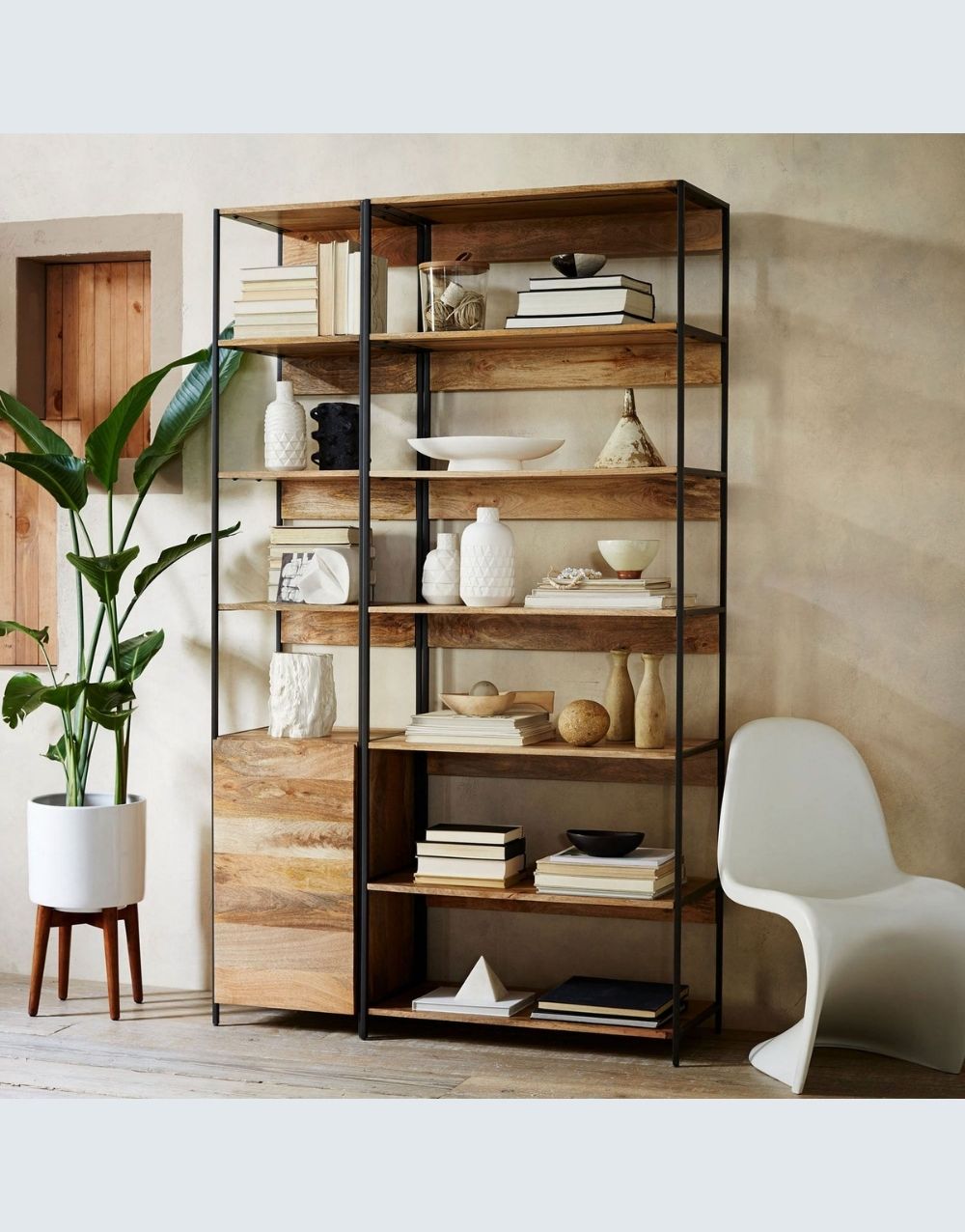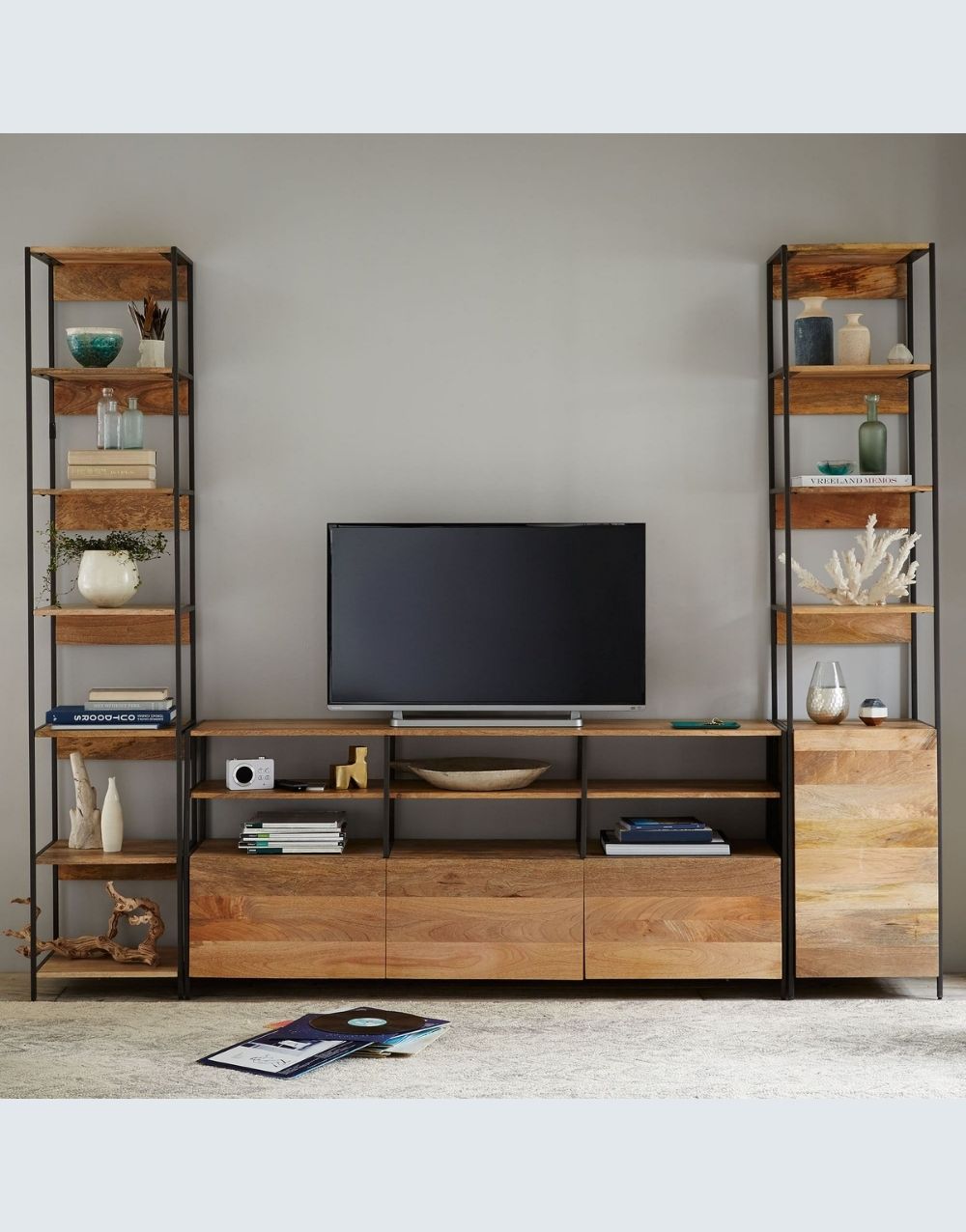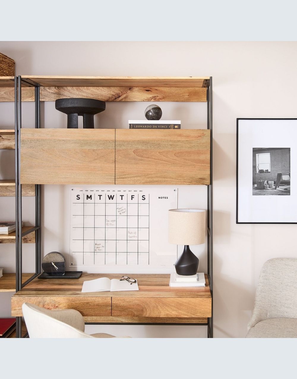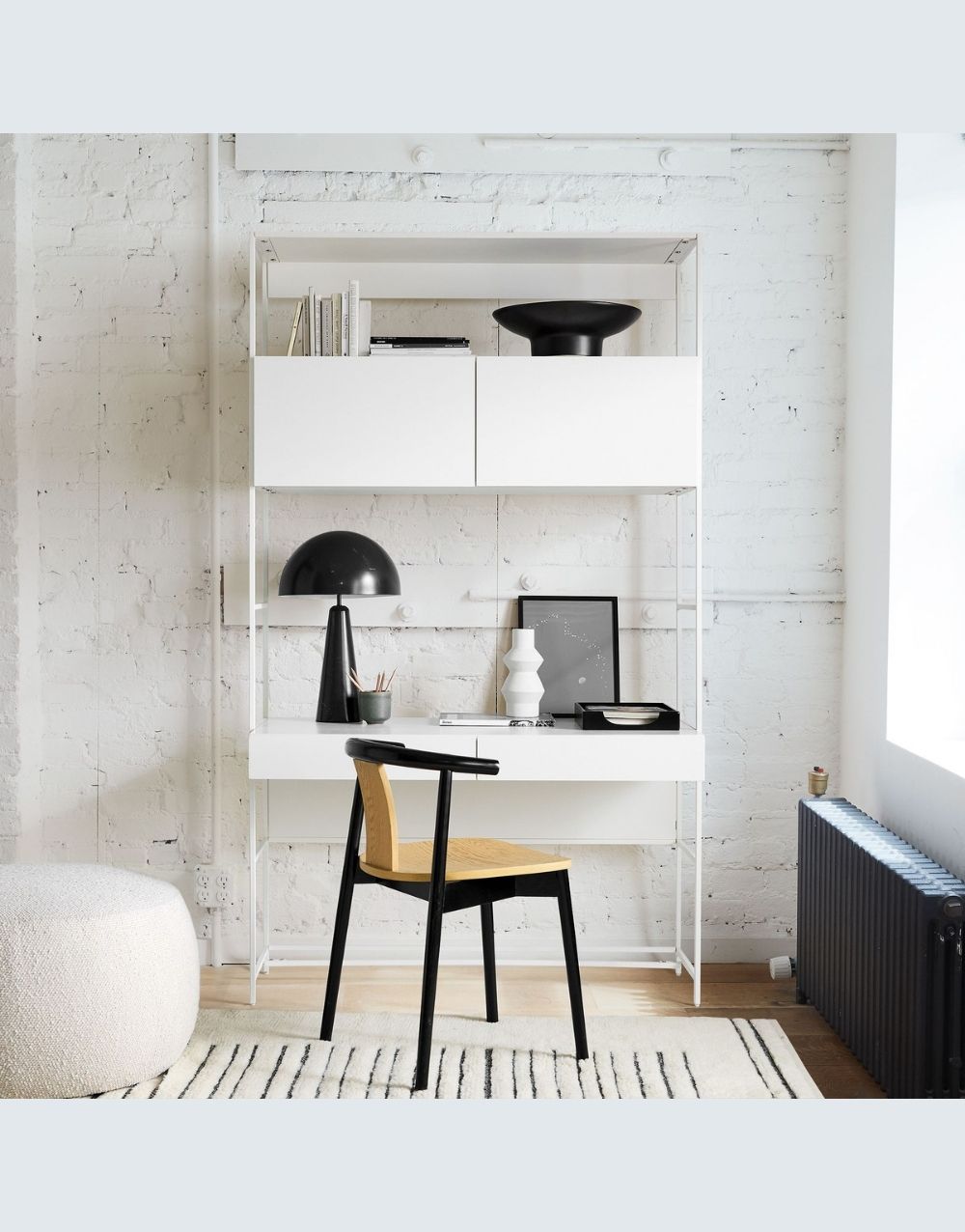 El estudio DANFI modular , en una excepcional propuesta de estilo industrial, muy completo, llevando escritorio, archivadores, cajones de almacenamiento ocultos y destapados, entrepaños para impresora, librerias y superficies para acomodar los artículos necesarios en tu espacio funcional. La calidez de sus materiales hará acogedor y confortable tu sitio de trabajo potenciando tu trabajo, bien sea en casa u oficina. Combina metal cold rolled pintado en electrostática negro mate con madera maciza en diferentes estilos.
