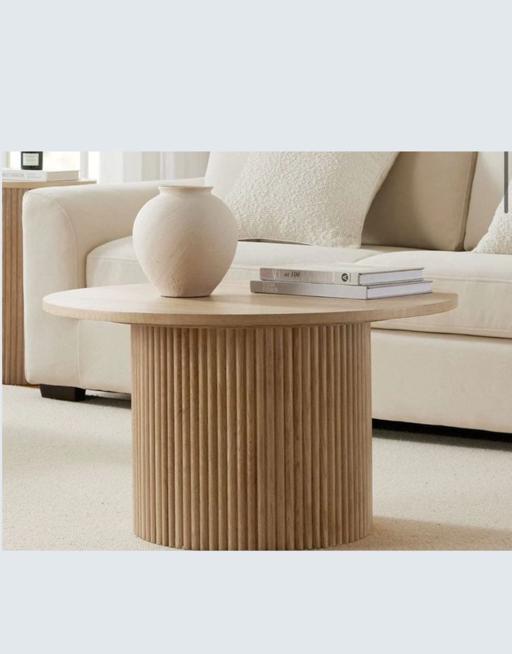 La mesa de centro redonda XITU en madera maciza con un acabado floral morado es una pieza única y llamativa en cualquier espacio. La forma redonda suaviza el ambiente y fomenta la interacción, mientras que el uso de madera maciza garantiza durabilidad y calidad. su base alistonada añade un toque de elegancia y sofisticación, aportando un punto focal visualmente interesante.