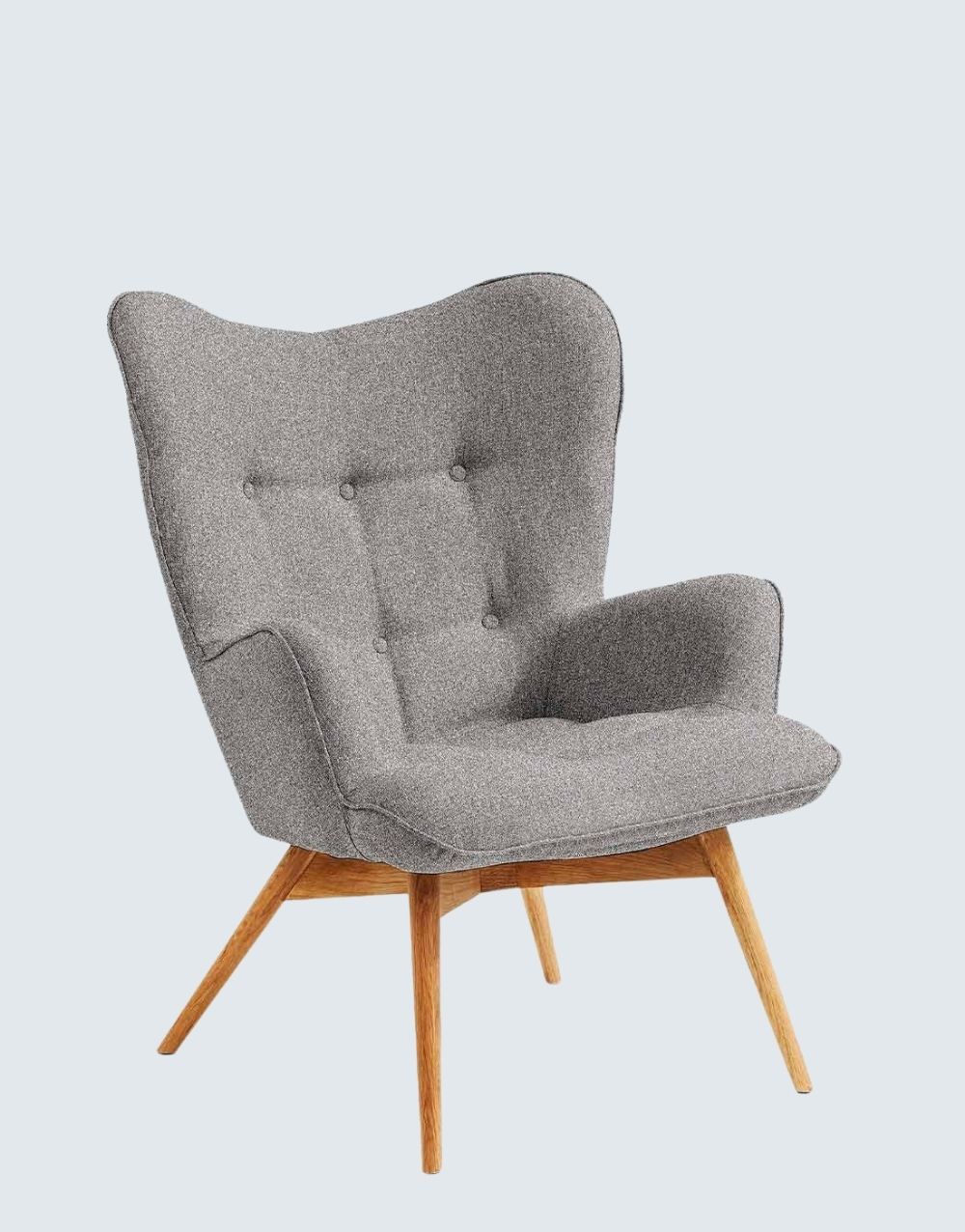 Poltrona FLOCHE: Fabricada en madera maciza y tapizada en tela antifluidos, esta poltrona es tanto hermosa como funcional. Con detalles de botones en la tapicería y una inclinación elegante en el respaldo, añade un toque de estilo a cualquier juego de sala.