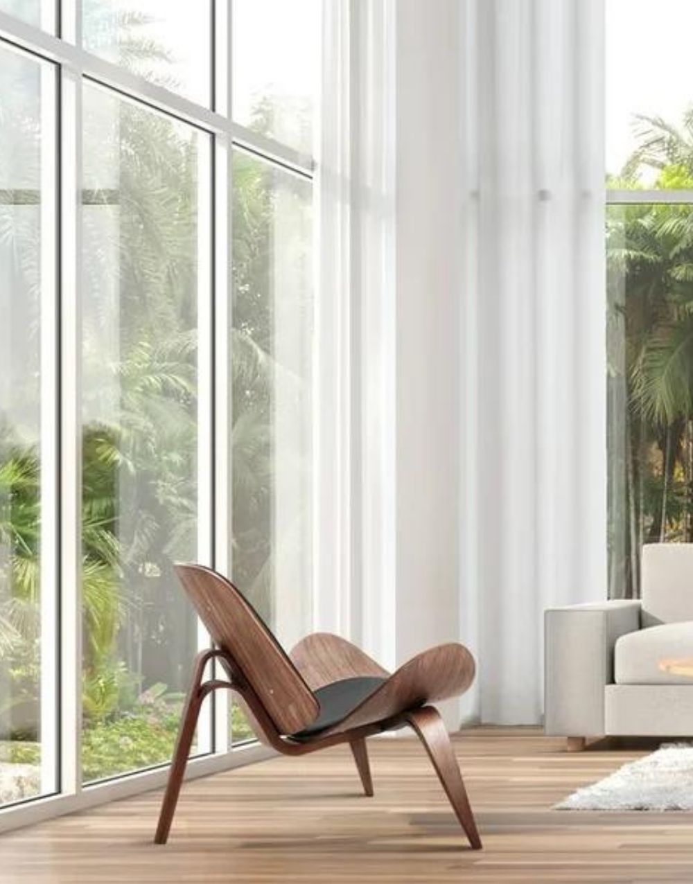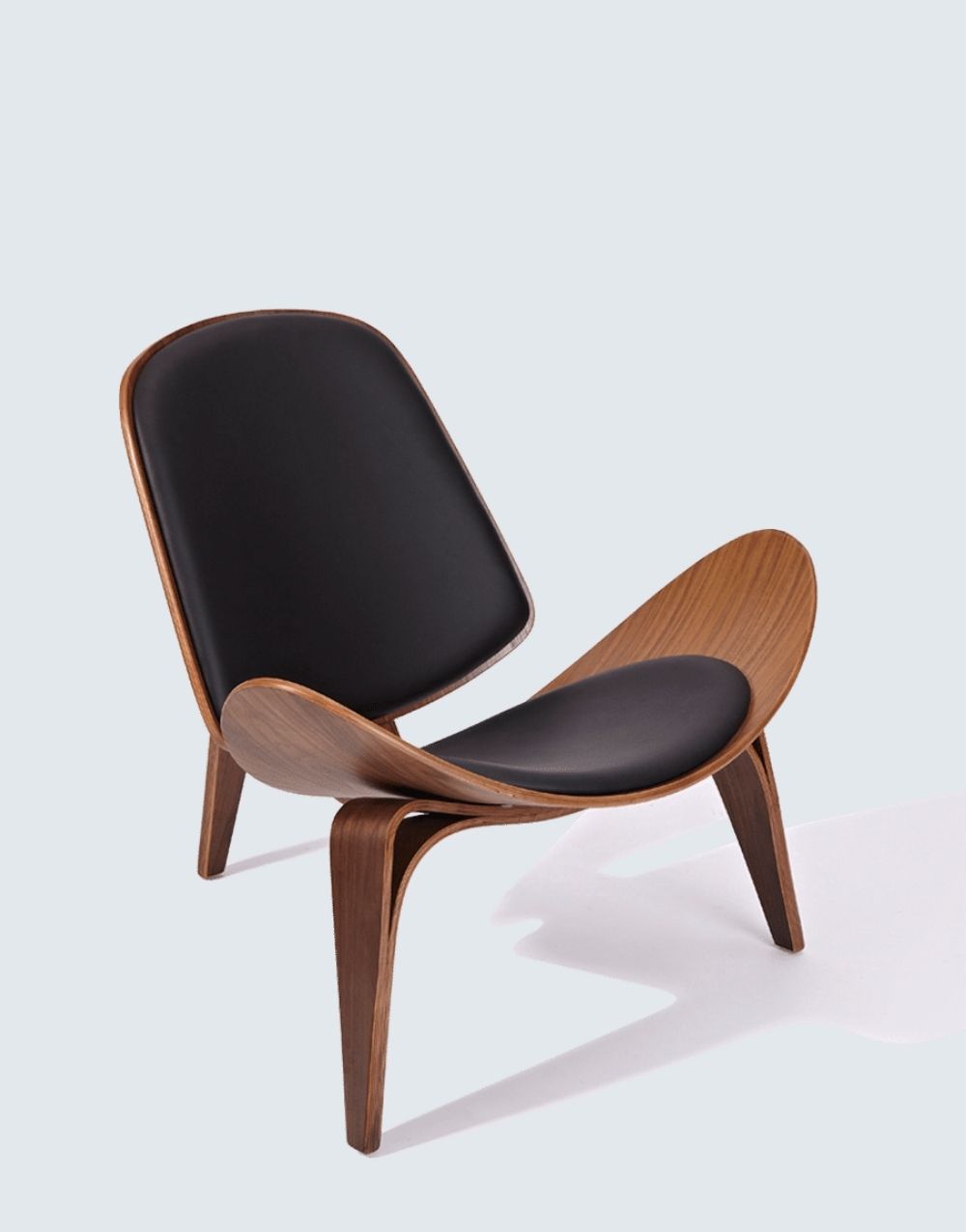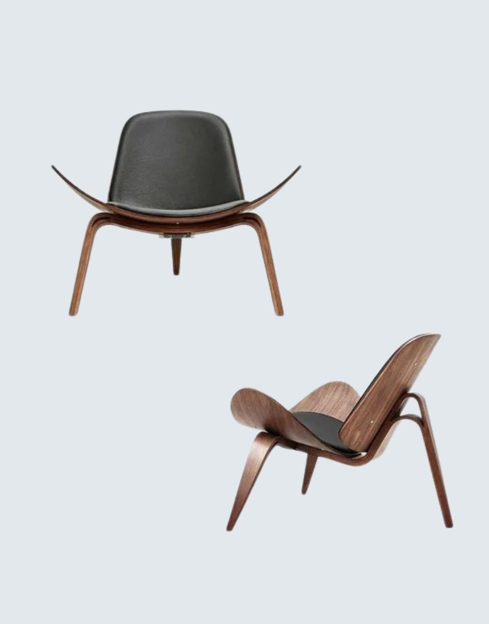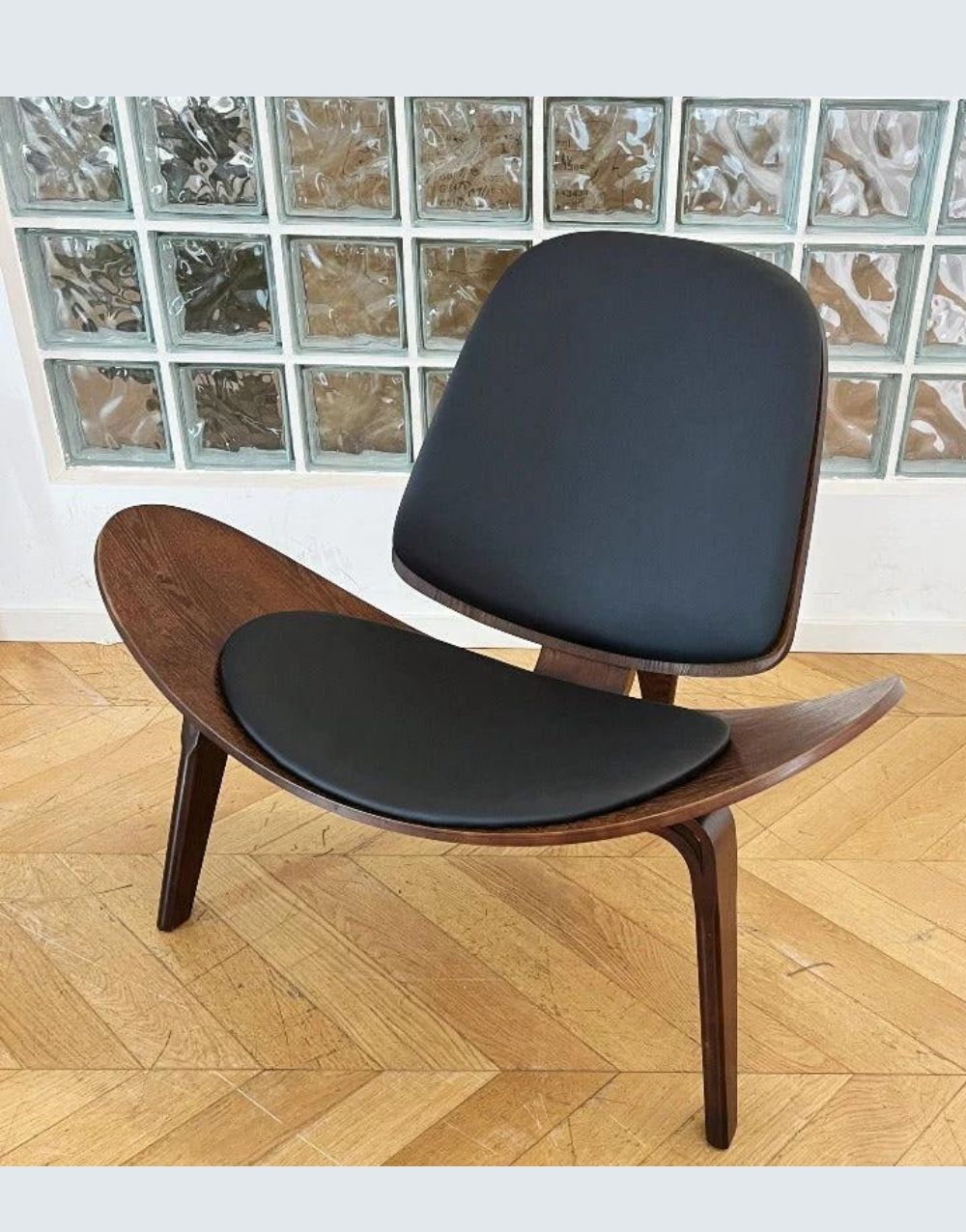 Poltrona SHELL DANESA: Con su diseño ergonómico y acabado en madera de roble, esta poltrona ofrece una experiencia de confort excepcional. Su lujoso acolchado y opción de tapizado en cuero vegano o natural la convierten en una elección moderna y versátil para cualquier sala.