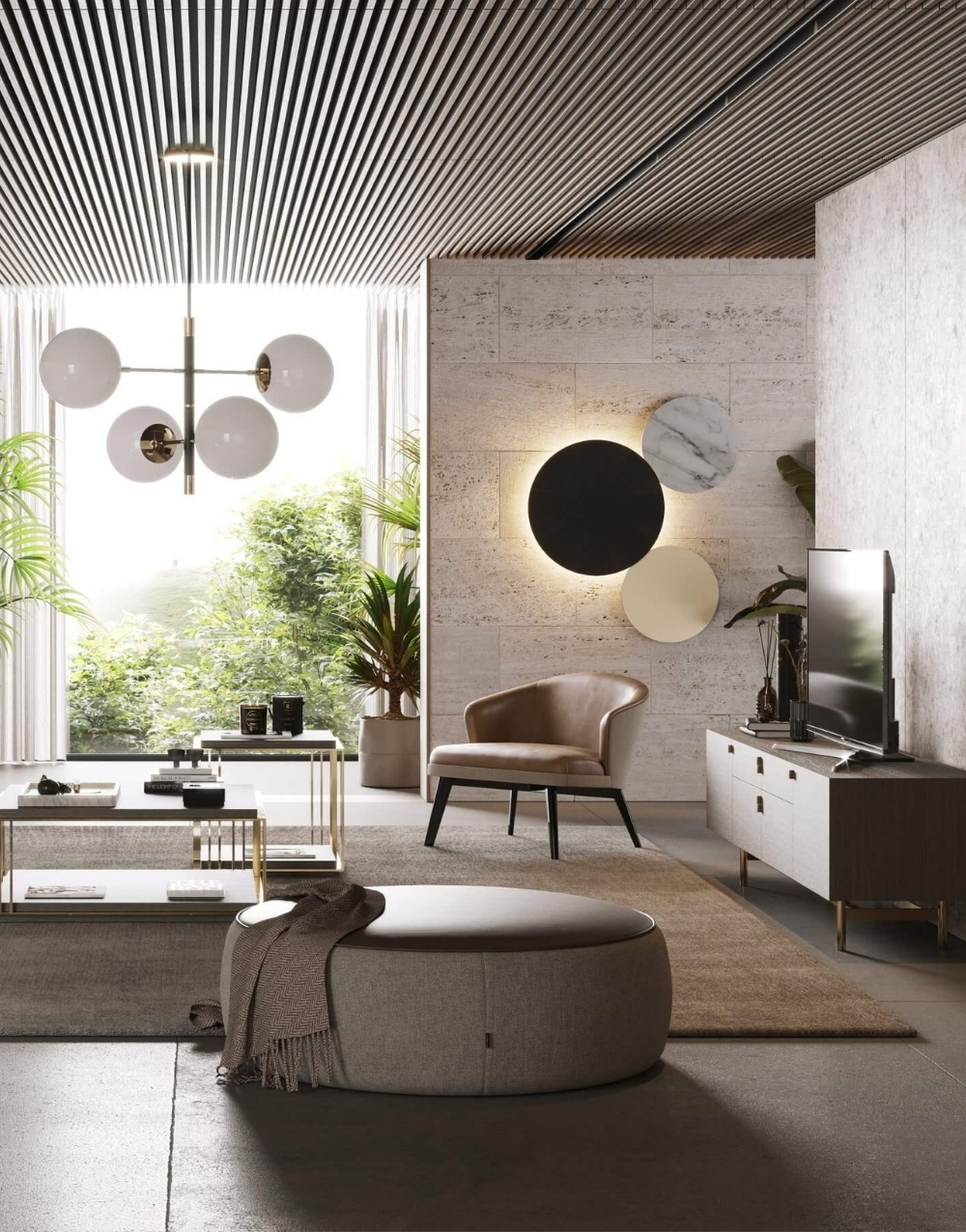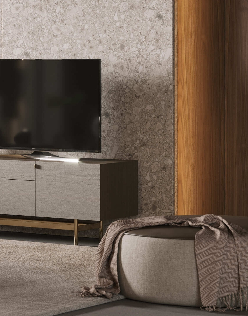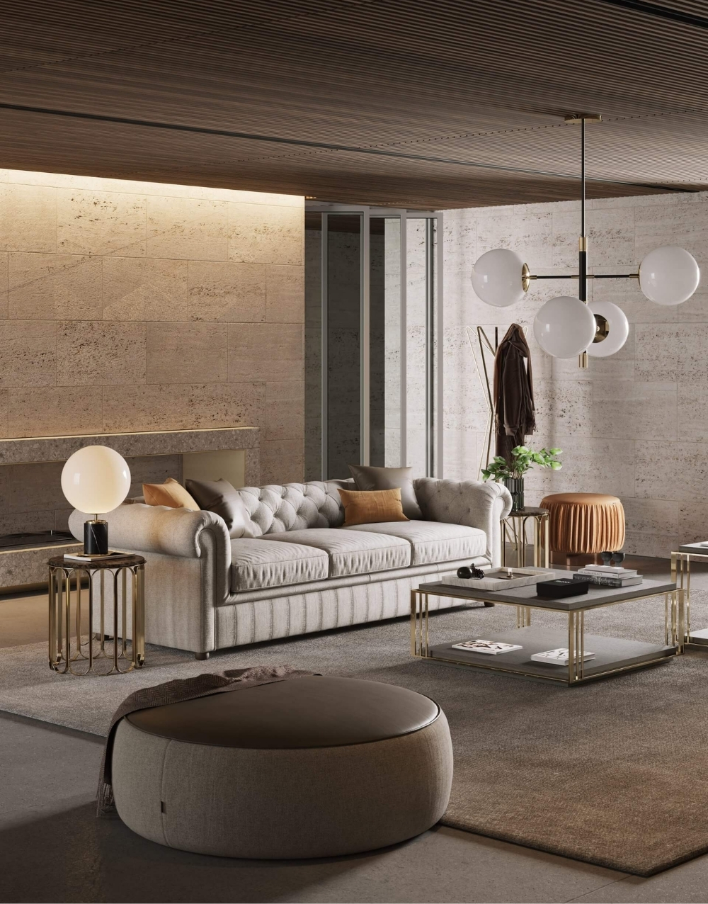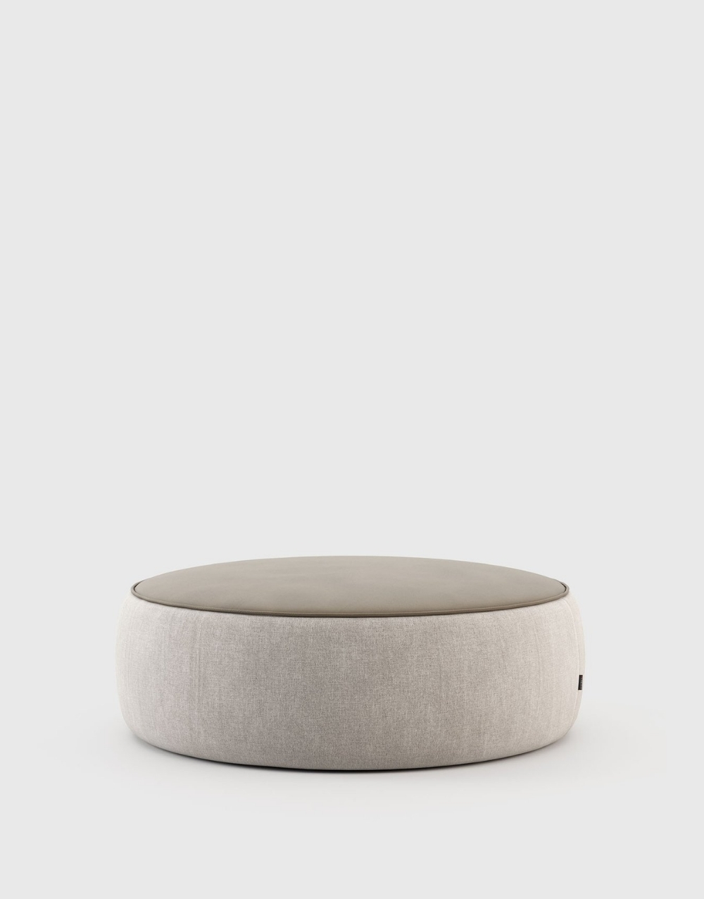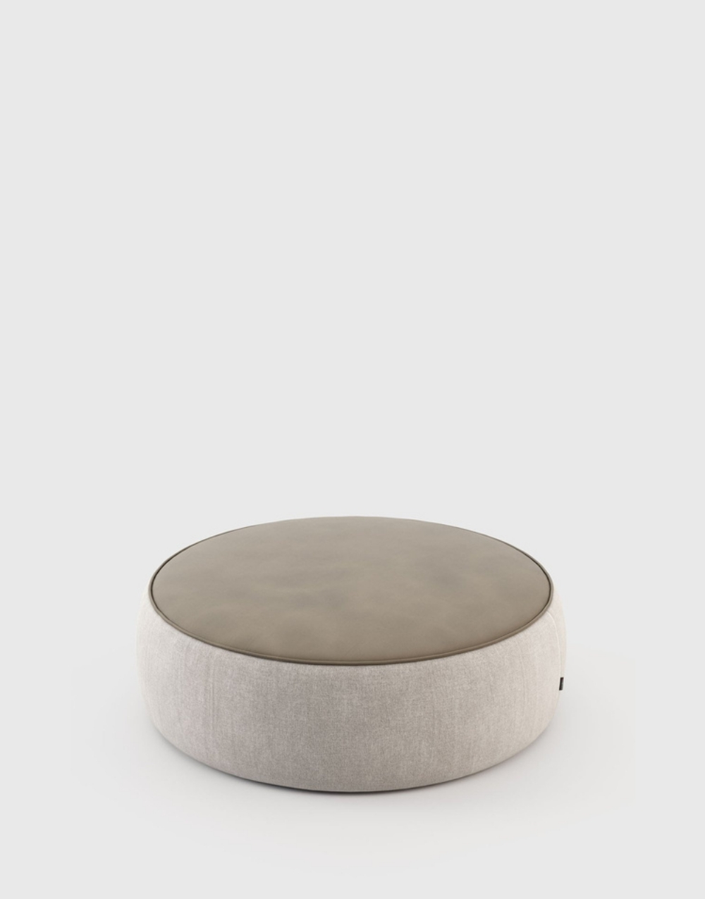 Puff circular de perfil bajo con cuerpo completamente tapizado. Incorpora una tapa superior revestida en cuero natural o textil. Su volumen continuo, sin patas visibles, y los acabados limpios refuerzan una estética minimalista y contemporánea, ofreciendo versatilidad funcional y estabilidad estructural.
