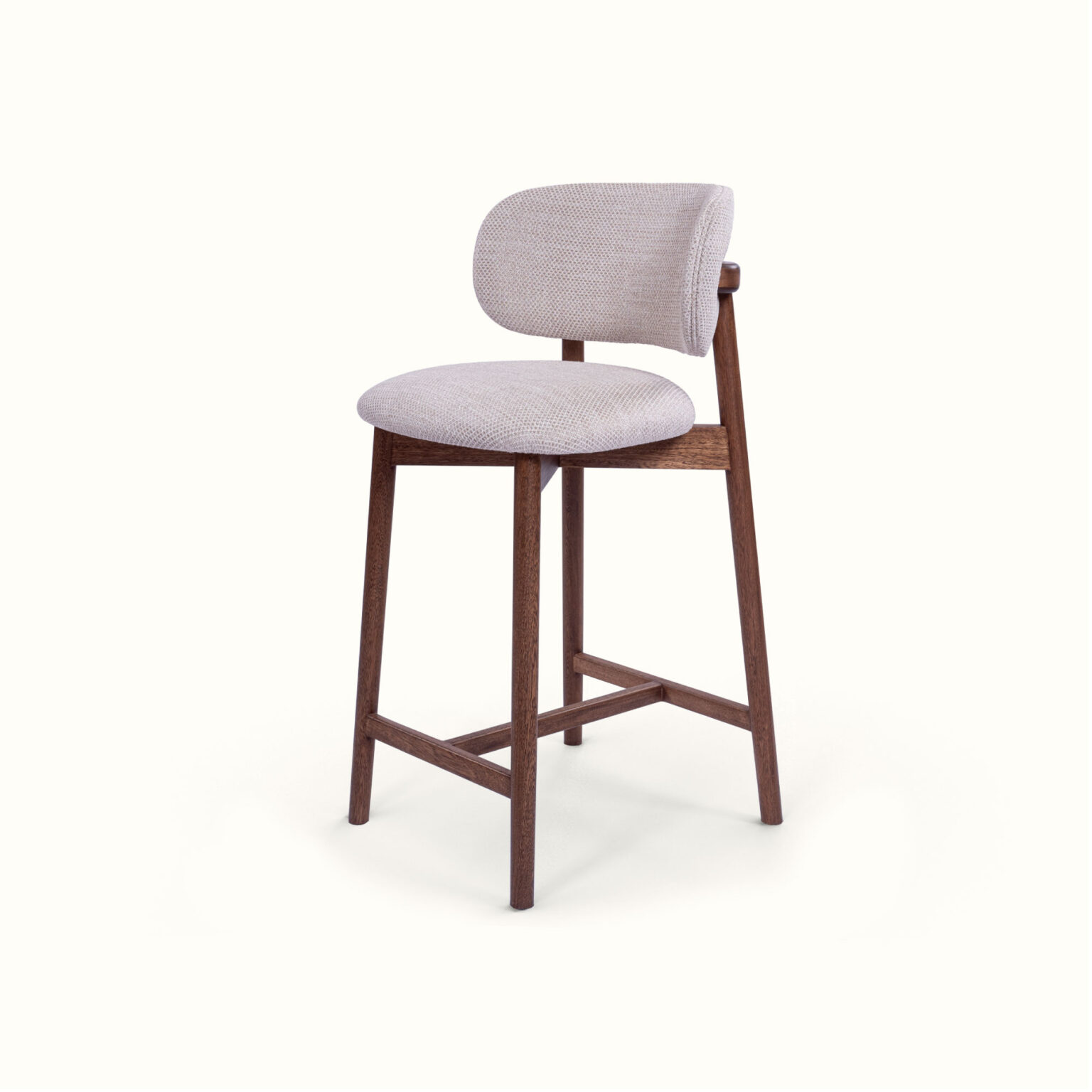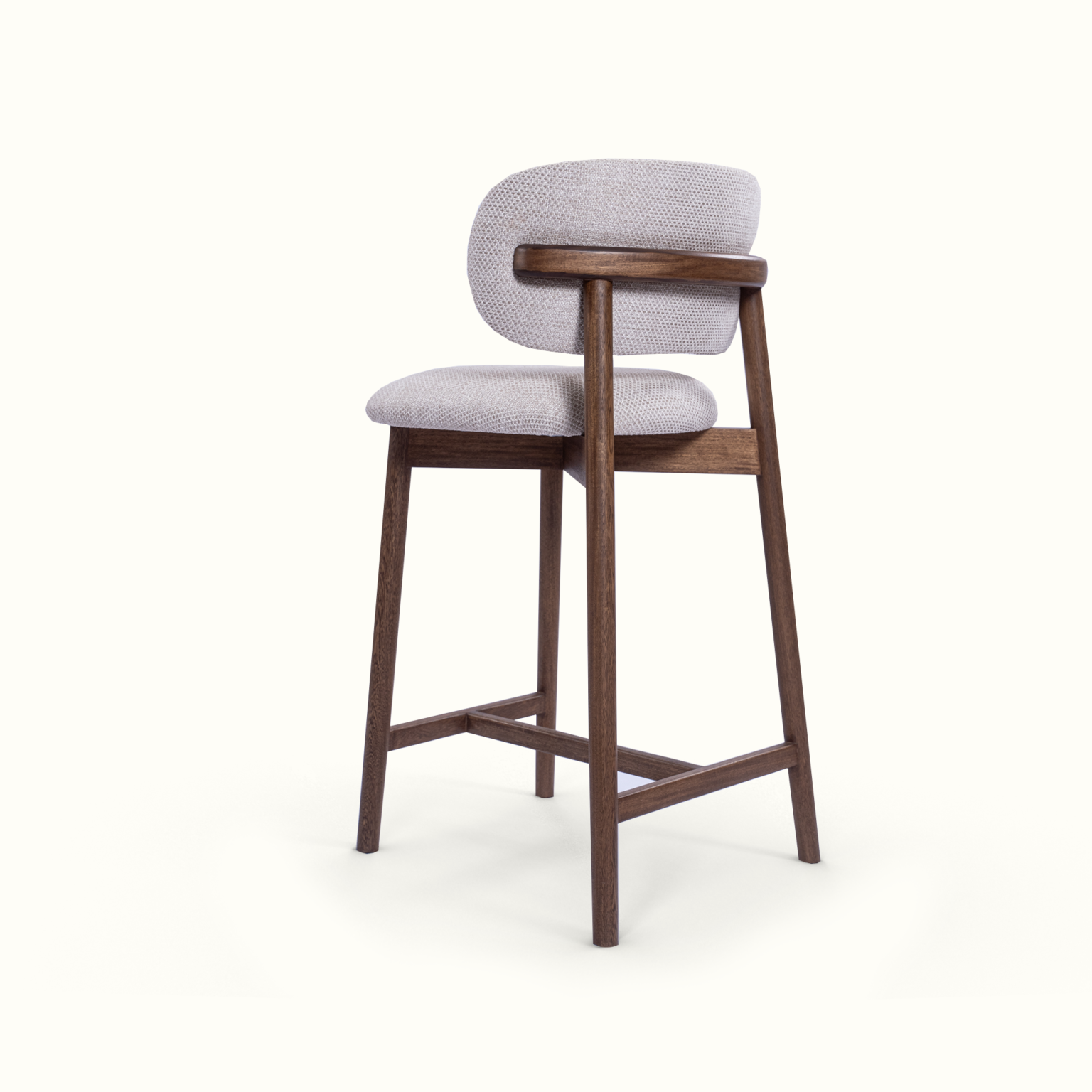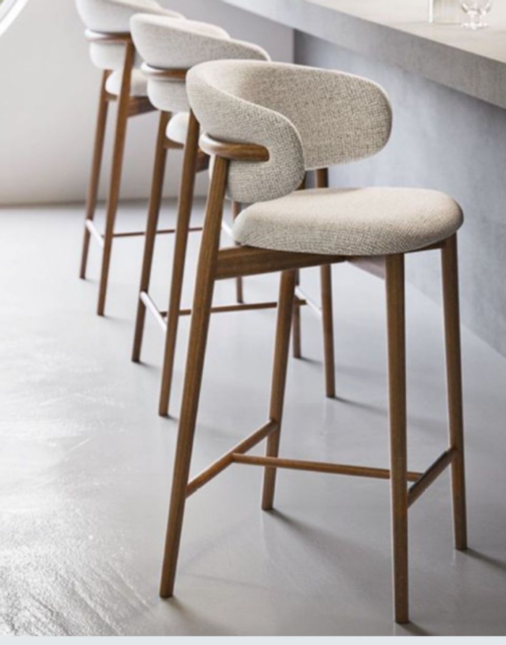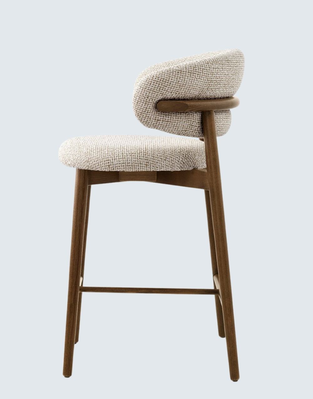 AMALFI una silla de barra encantadora y única que destaca por su estilo distintivo. La tela bouclé le proporciona una sensación acogedora y suave, mientras que la base de madera maciza en un vibrante tono de flor morado añade un toque de color y calidez. Ideal para añadir personalidad y elegancia a cualquier barra o espacio de cocina.