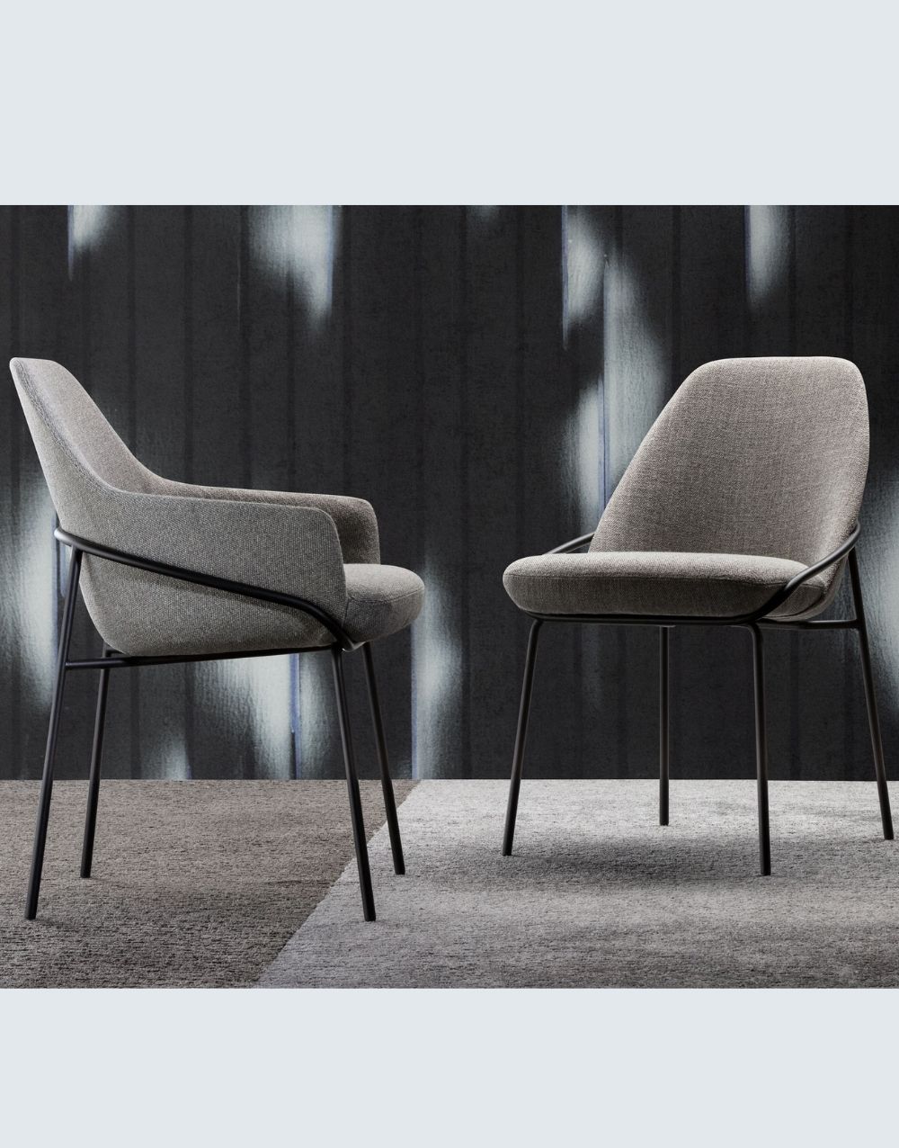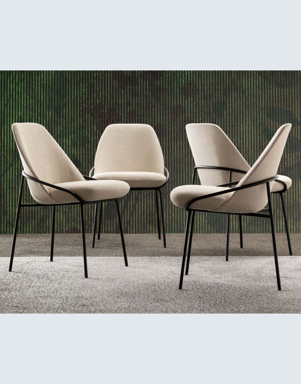 La Silla de Comedor KENNEDY se distingue por su diseño de líneas simples y elegantes, fabricadas en metal cold rolled y recubiertas con pintura electroestática negro mate, que al entrelazarse generan interesantes y originales efectos visuales. Su comodidad es notable, gracias a la utilización de espuma de alta densidad y a la variedad de opciones en textiles disponibles, tanto en colores como en texturas.