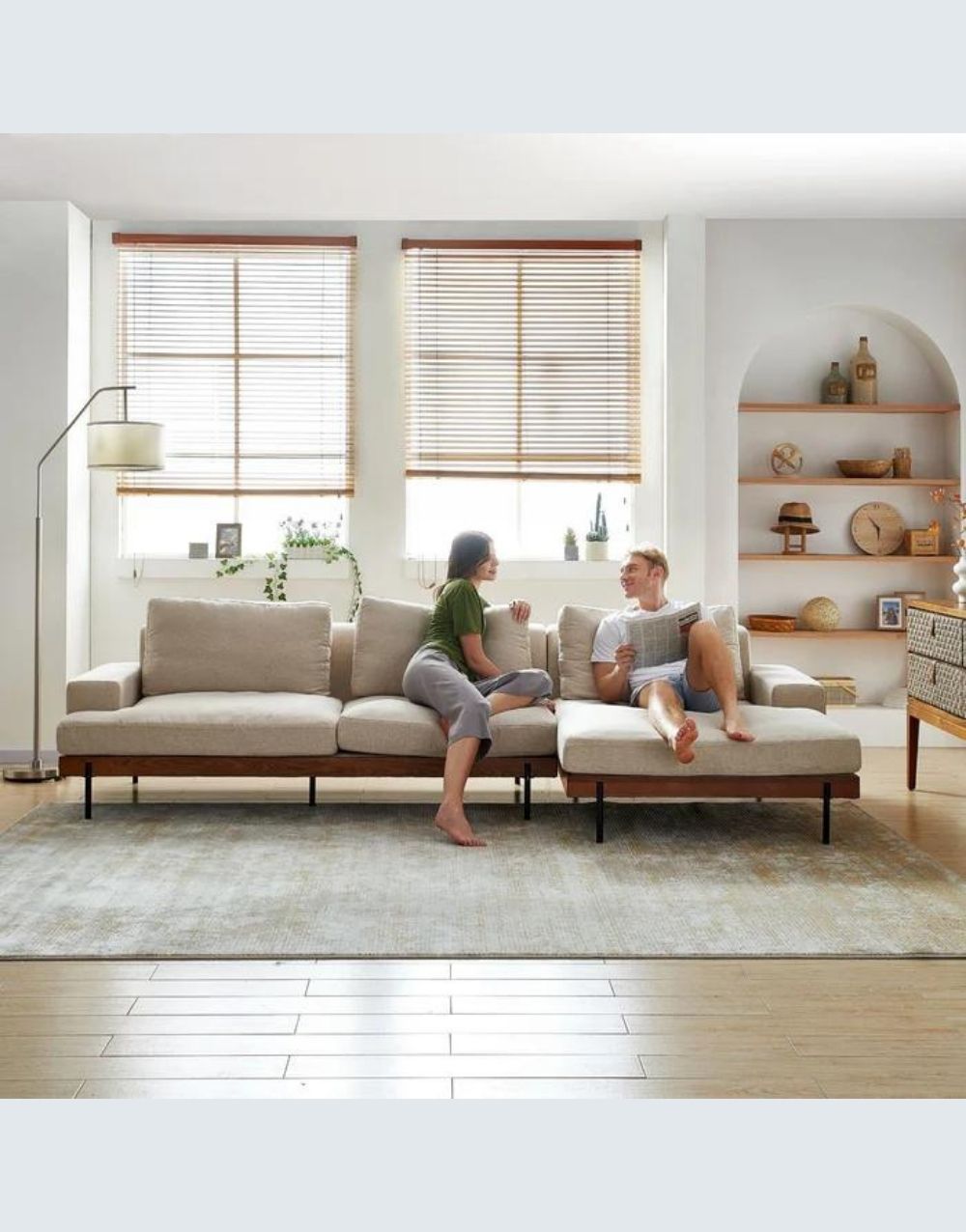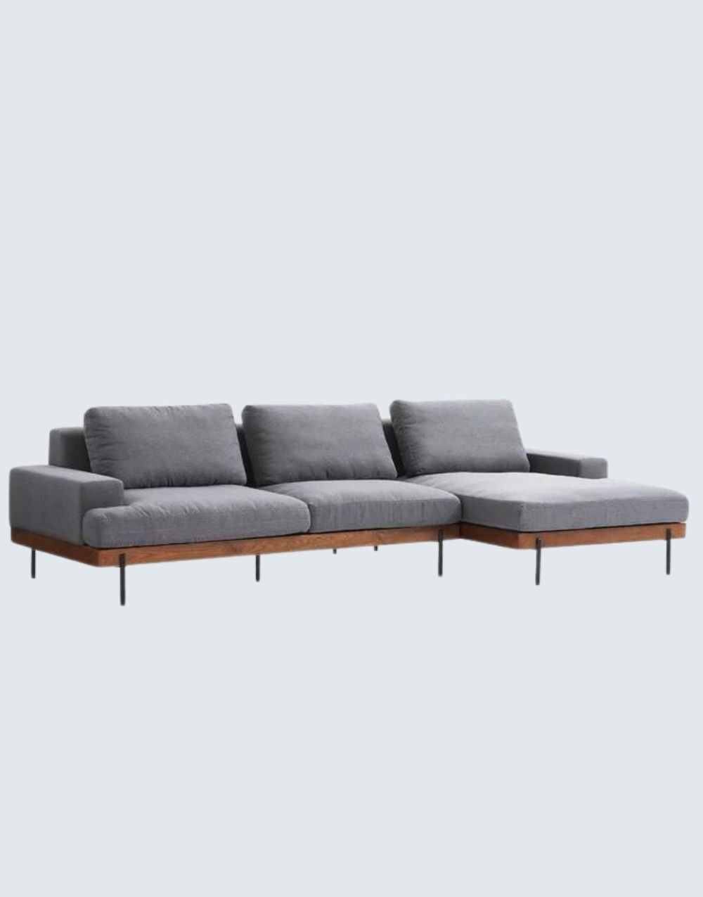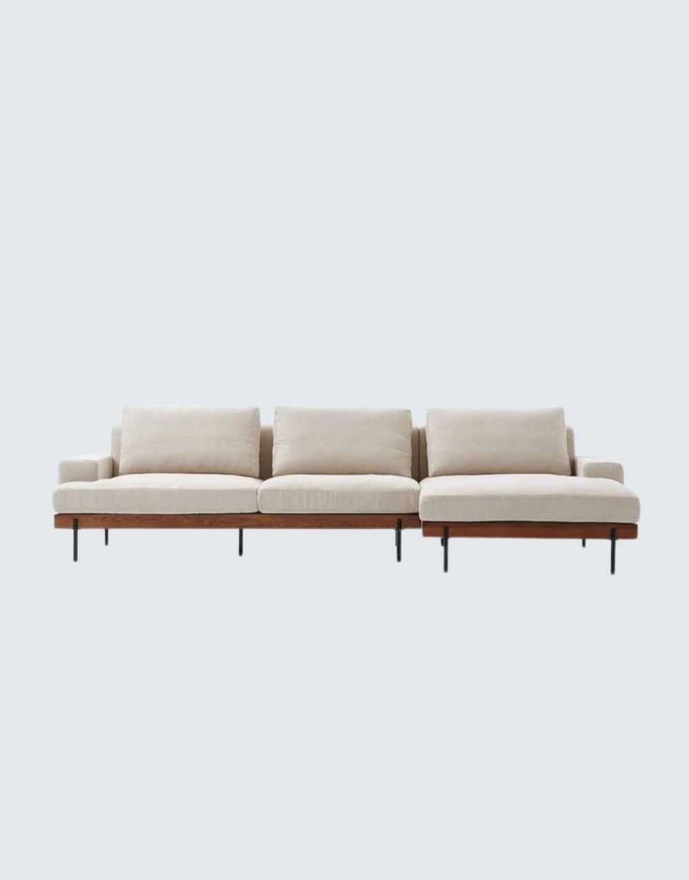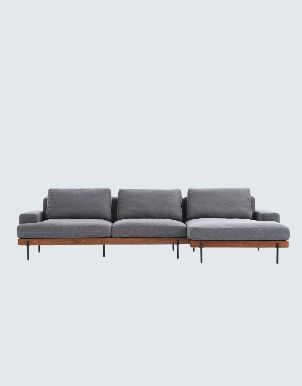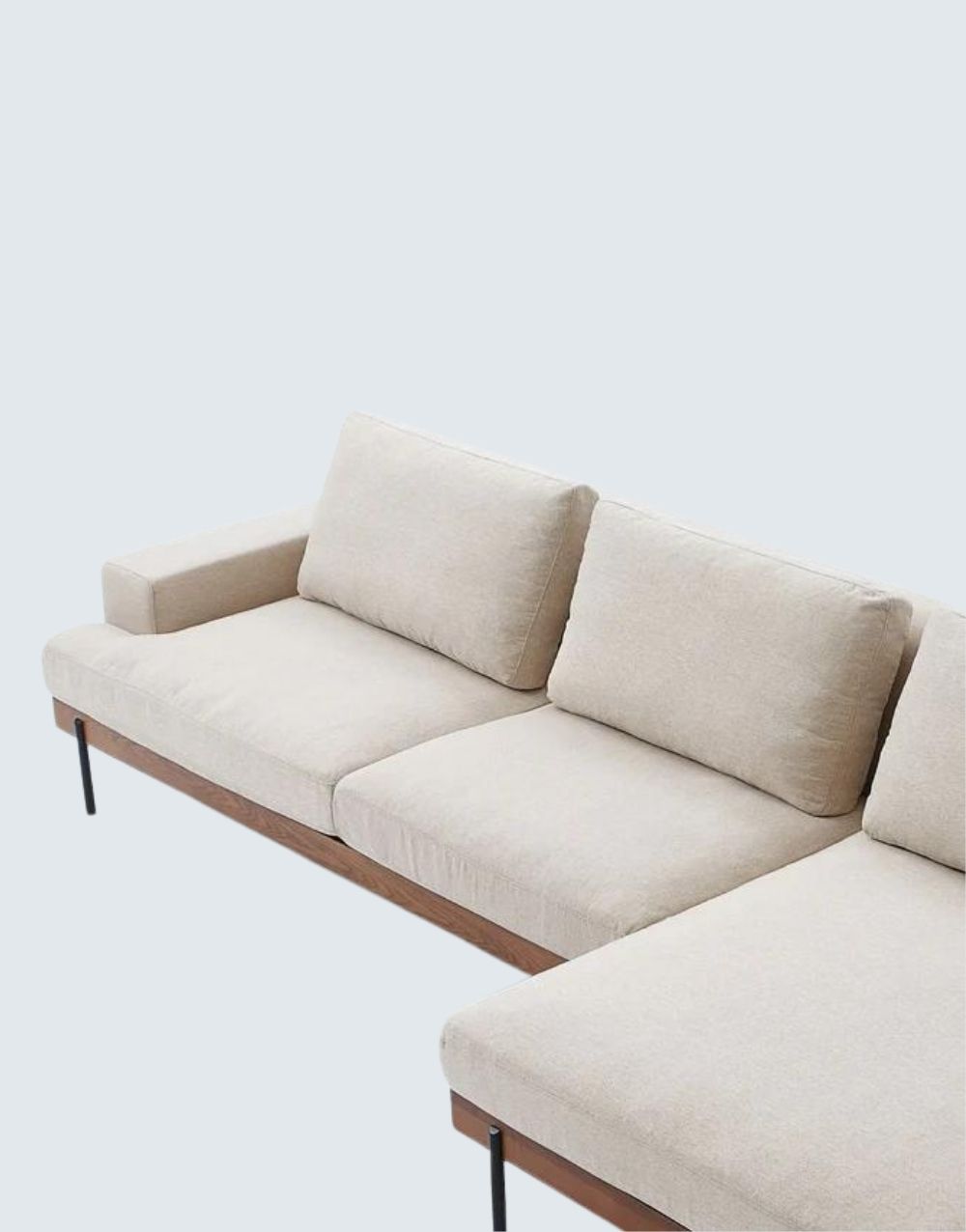 El SOFÁ Q-TER en L es una opción de mobiliario versátil y de alta calidad que combina una base de madera maciza sólida, tela anti fluido y patas metálicas pintadas en pintura electrostática, correas en cuero y varilla en espaldar. Su diseño elegante y duradero garantiza comodidad y estilo duradero en cualquier espacio de estar. contorno de soporte en madera maciza, cuenta con chaise longue de 100cm x 90cm