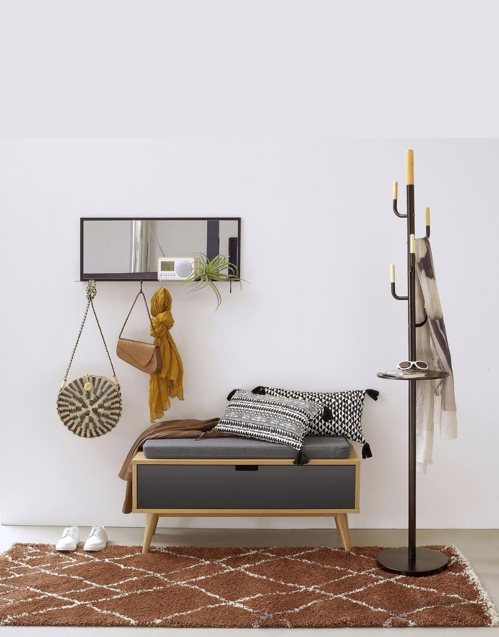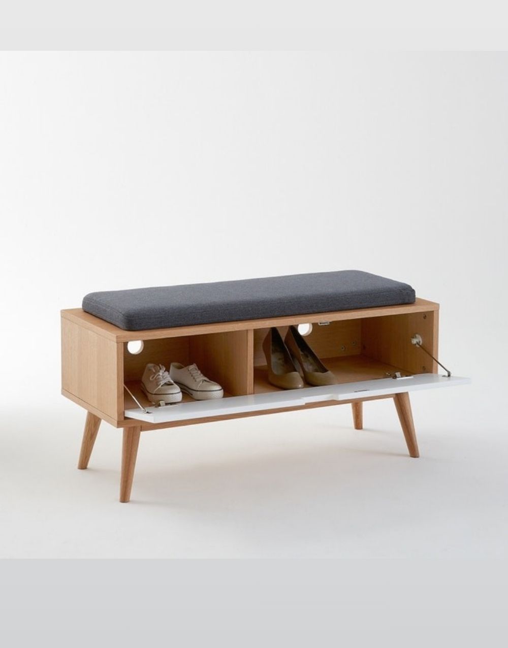 El zapatero LEP se destaca por la practicidad y funcionalidad. Es un mueble fabricado en madera maciza industrializada con recubirmiento natural y su frente pintado de color pleno en laca catalizada. Su cojín tapizado en tela antifluido le da un toque de sobriedad.